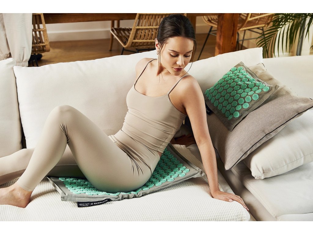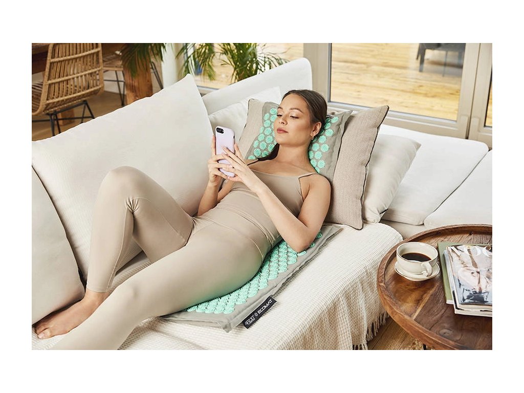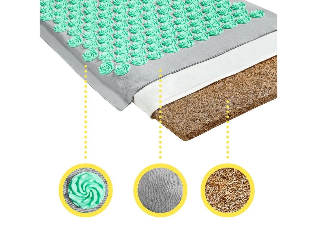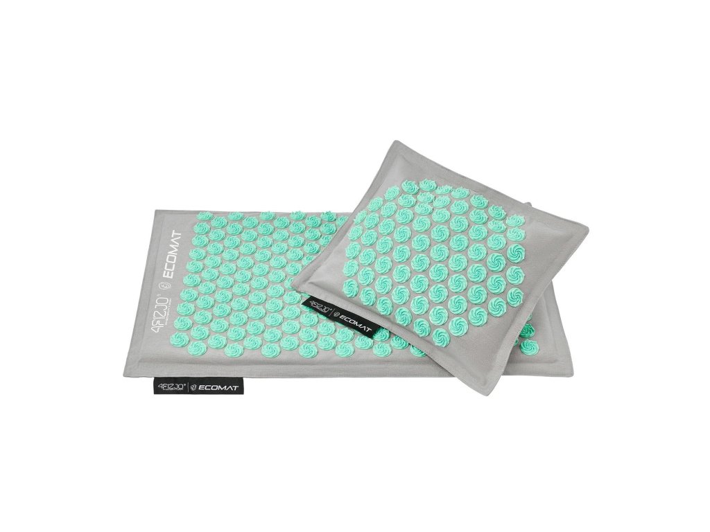 Akupresurní podložka s kokosem a s polštářkem s pohankovými slupkami 68x42cm šedotyrkysová