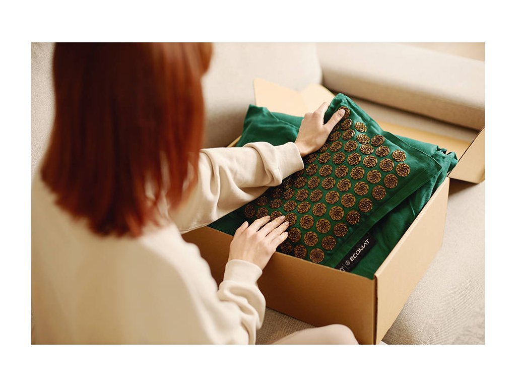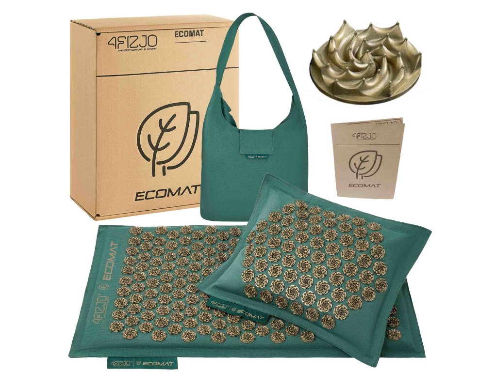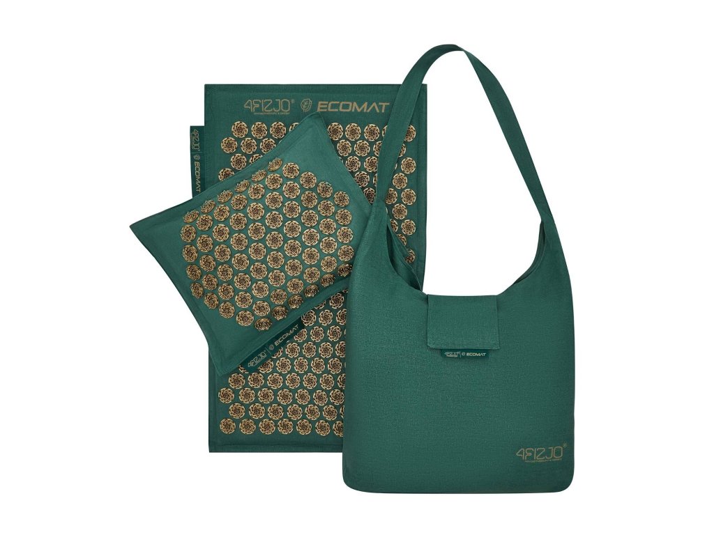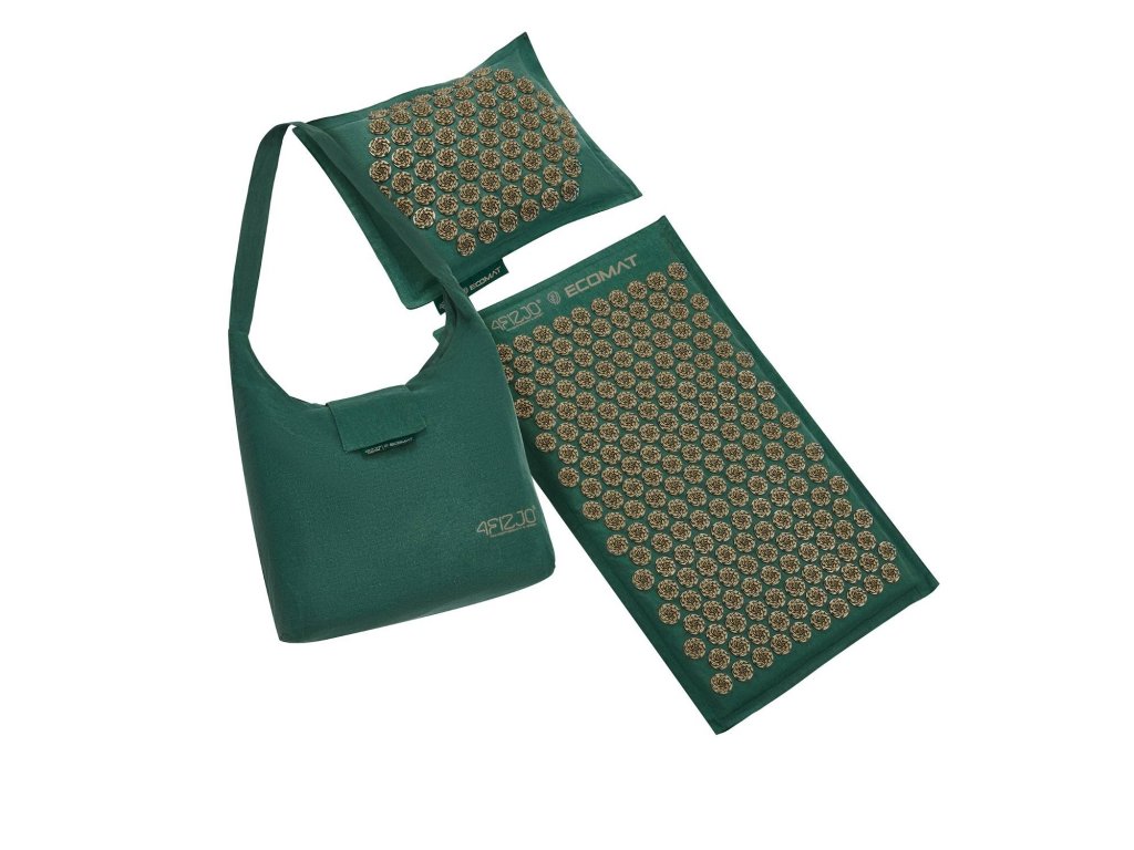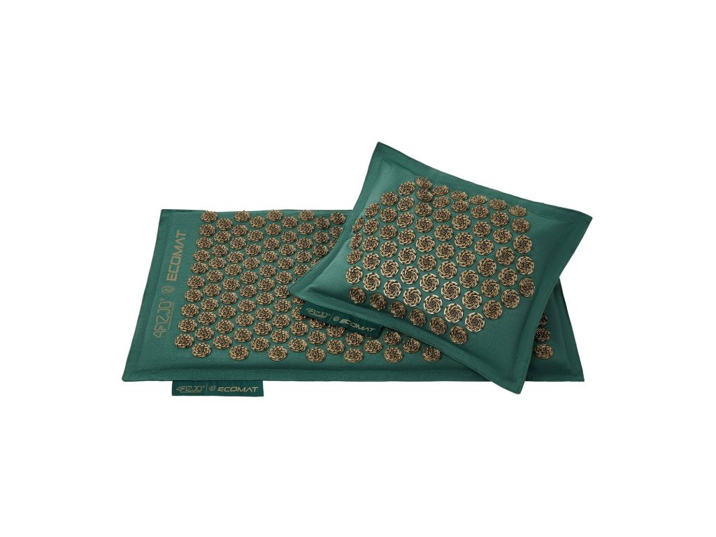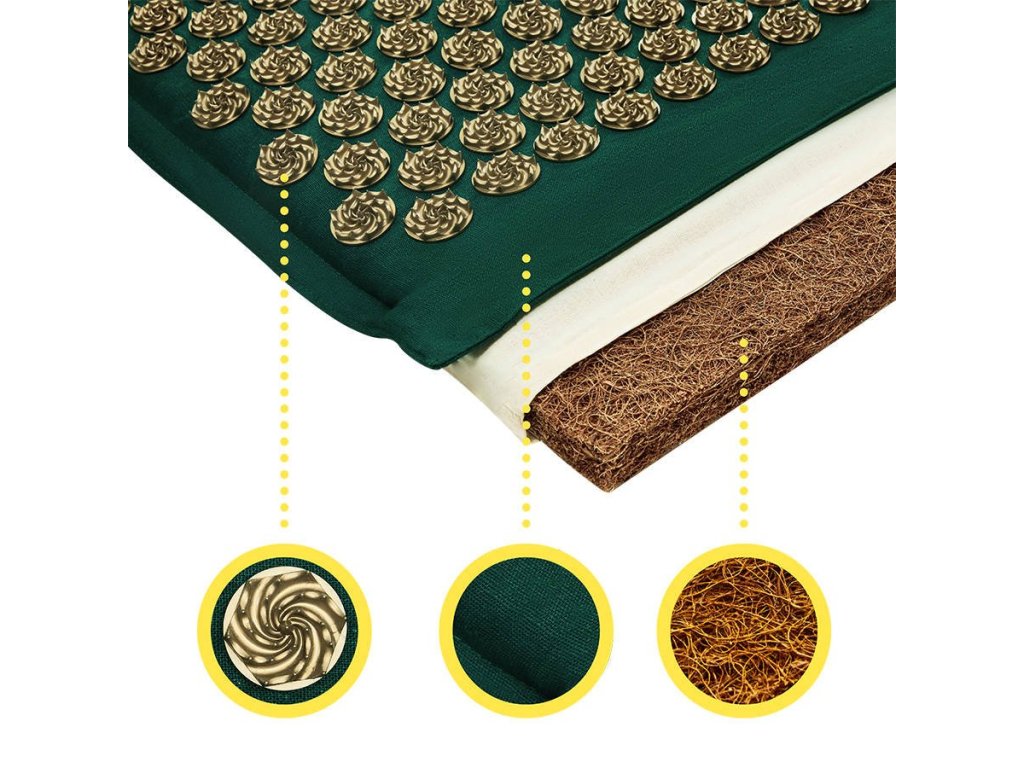 Akupresurní podložka s kokosem a s polštářkem s pohankovými slupkami 68x42cm zelenozlatá