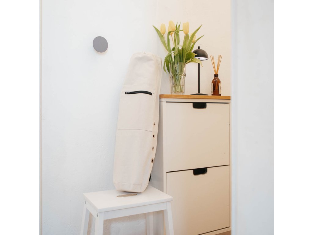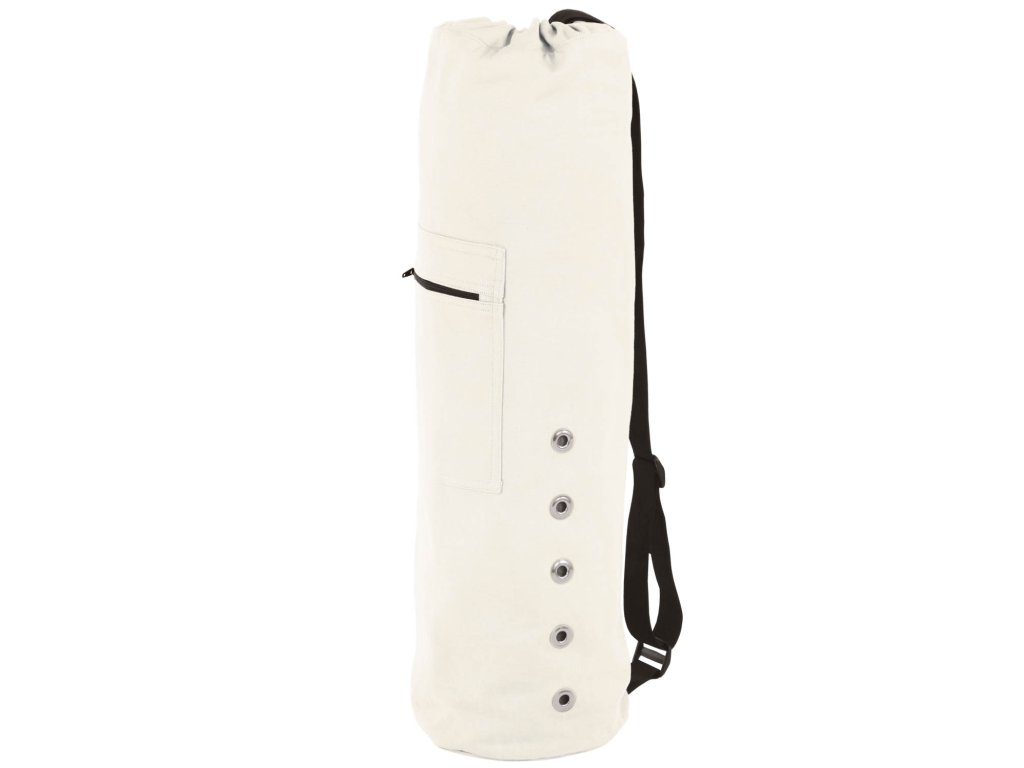 Tato taška na jógu je vyrobena z odolného plátěného materiálu (100% bavlna). Střihem připomíná sportovní vak a nabízí dostatek prostoru pro bezpečné přenášení vaší jógové podložky. S průměrem 20 cm a délkou 72 cm se hodí pro většinu běžných podložek – pojme podložky do tloušťky 6 mm a šířky až 70 cm.