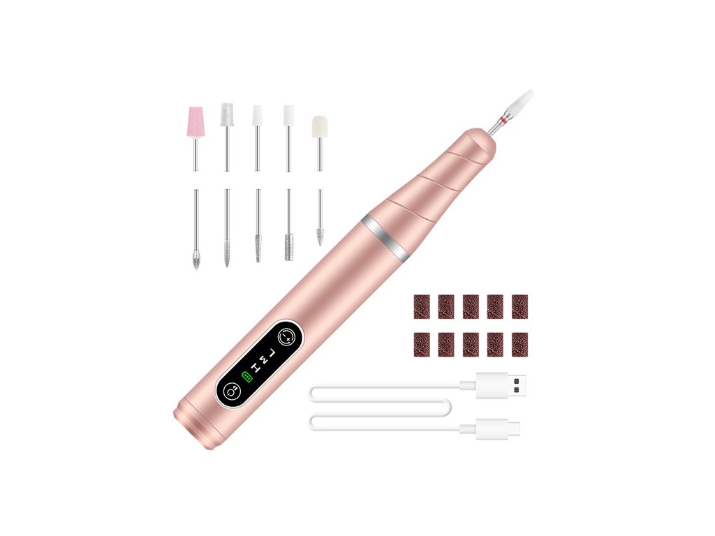Krásná, moderní nabíjecí bruska. Lze ji používat k odstranění akrylové manikúry, odstraňování kůžičky, leštění, zarovnání a úpravu nehtů.