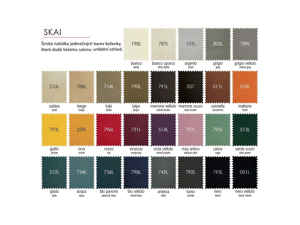 Kvalitní italské křeslo pro moderní interiéry v dvoubarevném provedení provedení, s možností výběru z 29 možných odstínů.