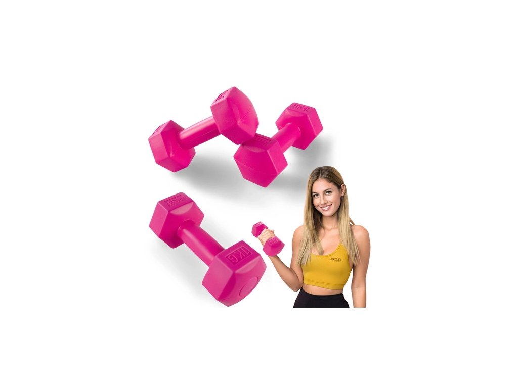 Praktické a pohodlné – činky mají protiskluzový povlak a jsou profilované, což zajišťuje velmi pohodlný úchop. Díky tomu, že jsou vyrobeny z PVC, neabsorbují pot a vlhkost, takže se snadno udržují v čistotě.