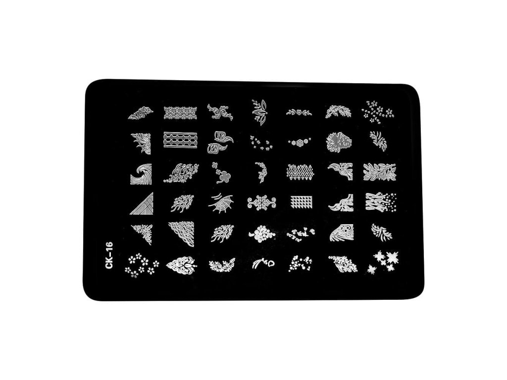 Razítkovací destička na nehty přírodní motivy. Destička určena pro opakované použití.