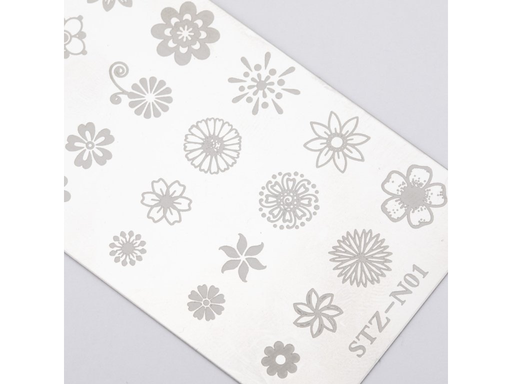 Razítkovací destička na nehty s jarními motivy. Destička určena pro opakované použití.