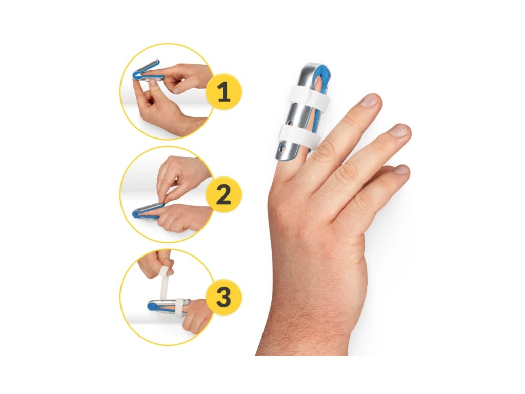 Lehká a pohodlná ortéza pro fixaci prstů ruky zajišťuje stabilizaci po úrazech, operacích i během rehabilitace. Otevřená konstrukce umožňuje dýchání pokožky, pěnová výstelka zvyšuje komfort a suchý zip usnadňuje nasazení i sejmutí.