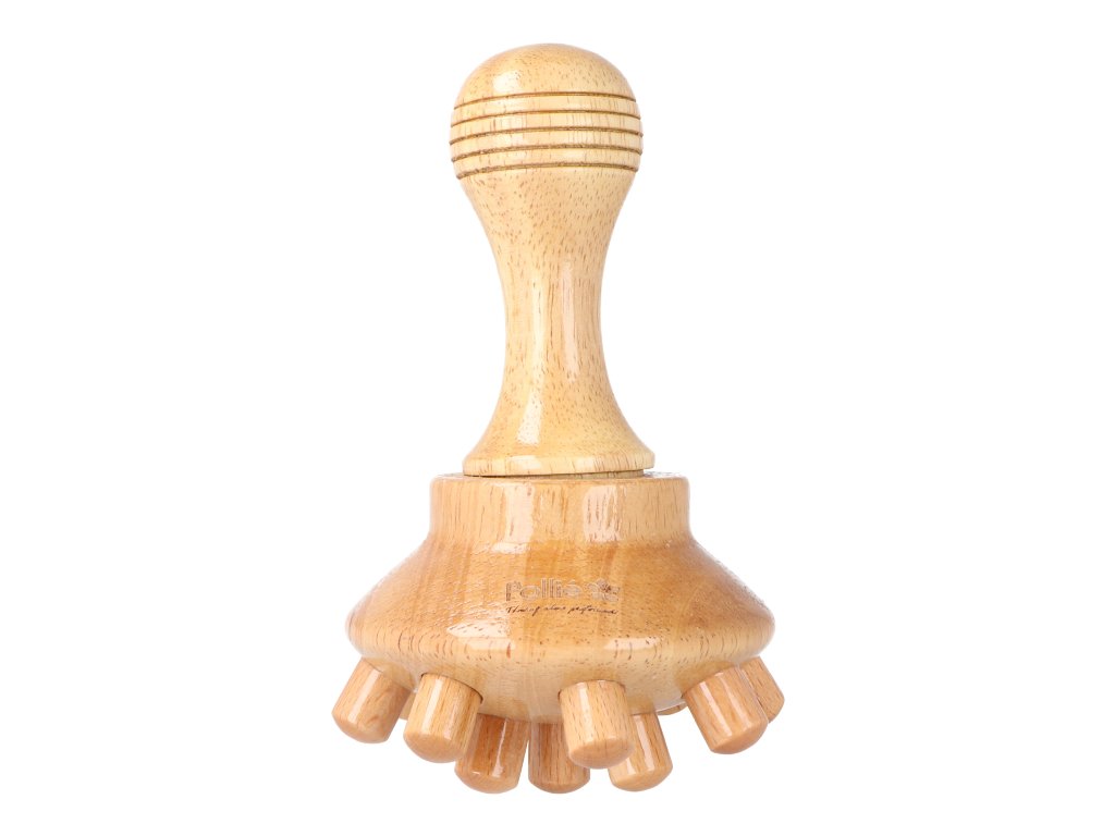 Víceúčelová dřevěná masážní pomůcka ze zaoblenými výčnělky s příjemně tvarovanou rukojetí.