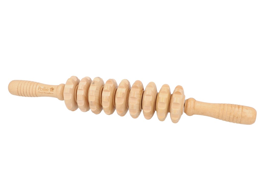 Dřevěný masážní váleček s ozubenými disky pro maderoterapii