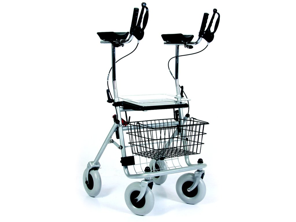 Stabilní předloketní čtyřkolové chodítko pro seniory a zdravotně postižené vhodné do interiéru i exteriéru.