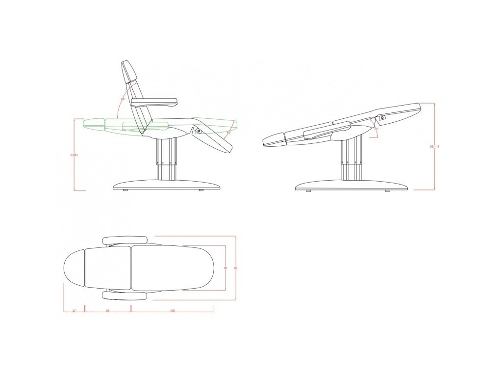 Kosmetické křeslo s elektricky nastavitelnou výškou, zádovou opěrou a sedákem. S těmito možnostmi získáte širokou škálu nastavení.