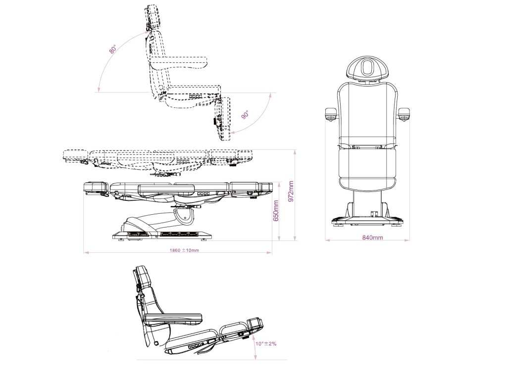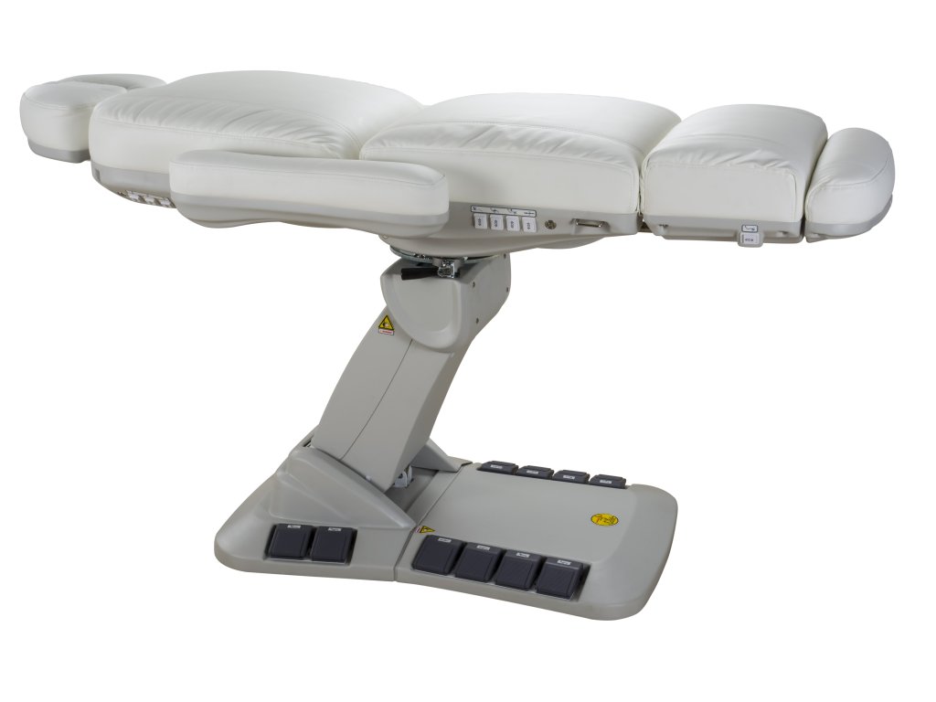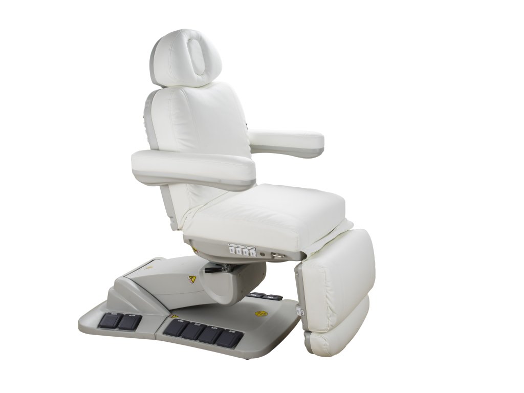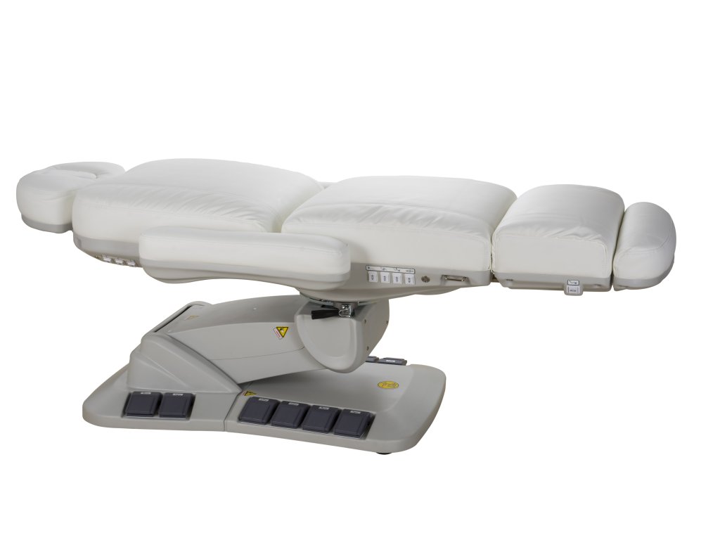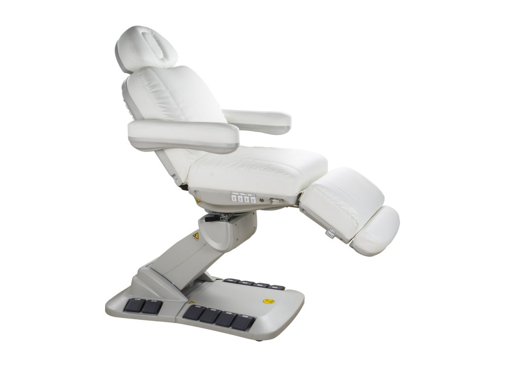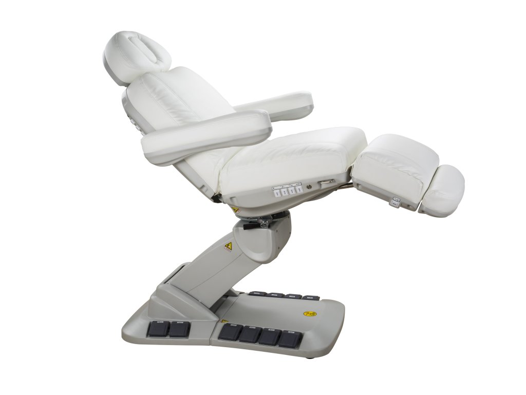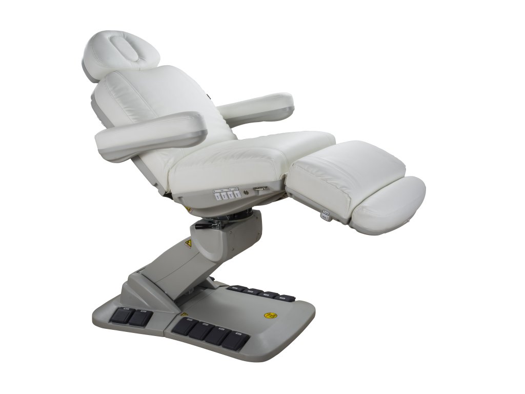 Kosmetické křeslo s elektricky nastavitelnou výškou, zádovou opěrou, nožním dílem a sedákem. S těmito možnostmi získáte širokou škálu nastavení.