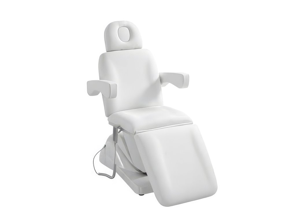 Kosmetické křeslo s elektricky nastavitelnou výškou, zádovou opěrou a nožním dílem. S těmito možnostmi získáte širokou škálu nastavení.