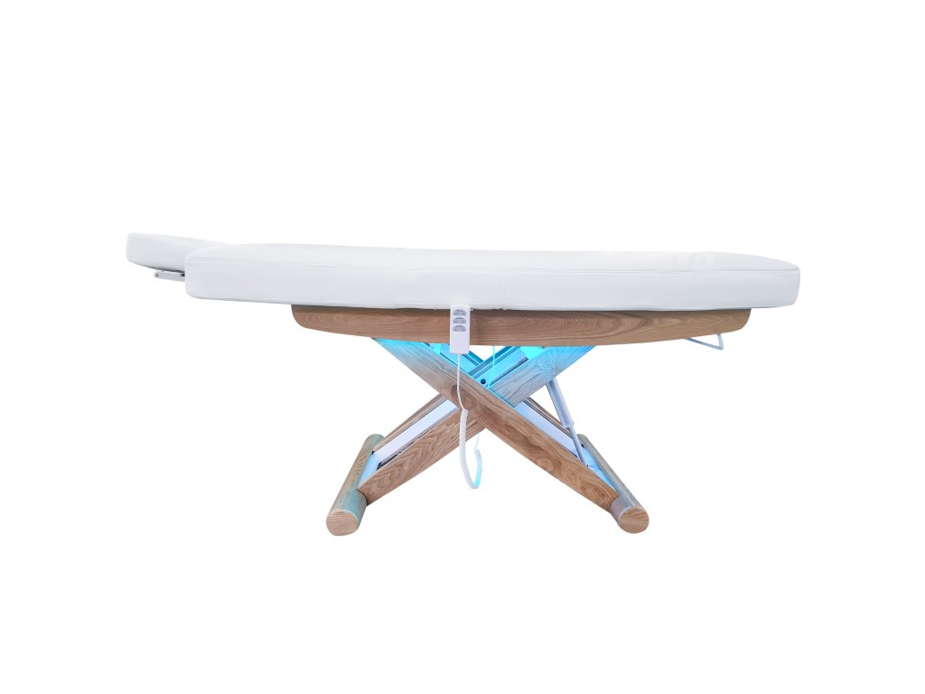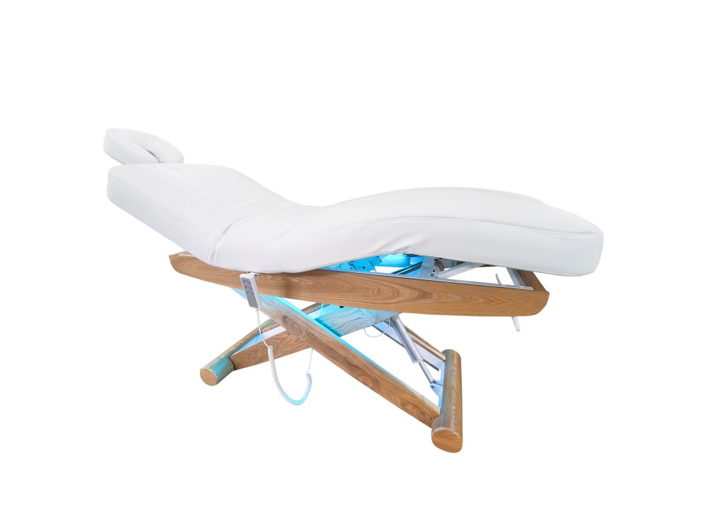 Elegantní kovová konstrukce s imitací přírodního dřeva. Díky 3motorům lehátko umožňuje širokou škálu nastavení. Kvalitní extra silné polstrování zajišťuje maximální pohodlí.