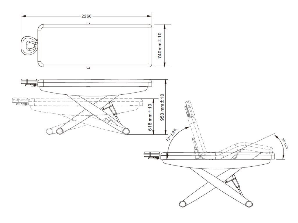 Elektricky nastavitelná výška lehátka pomocí ručního ovladače.