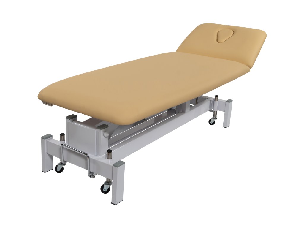 Elektricky nastavitelné lehátko s příjemně silným polstrováním. V ceně kolečka – centrální zdvih.
