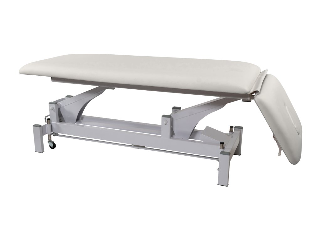 Výška lehátka je stavitelná elektromotorem pomocí ručního ovladače.