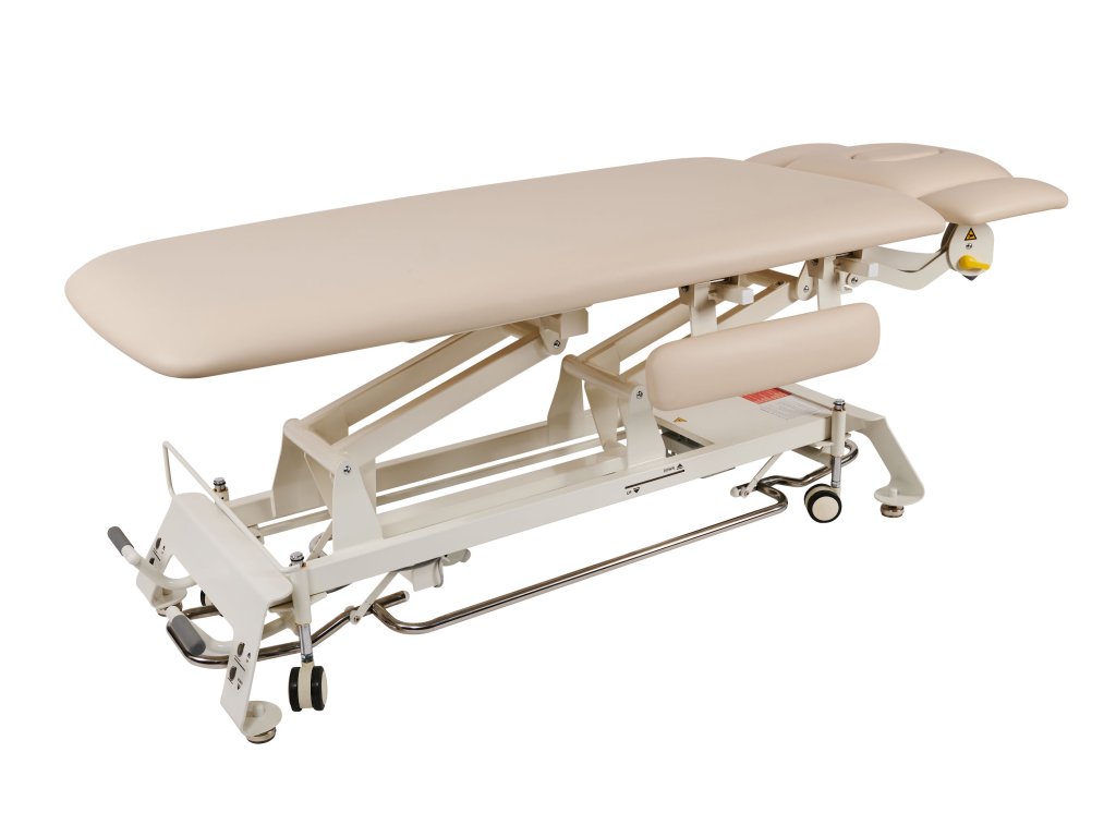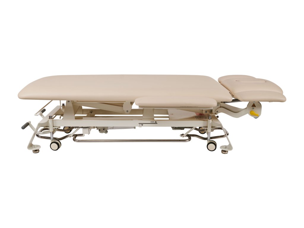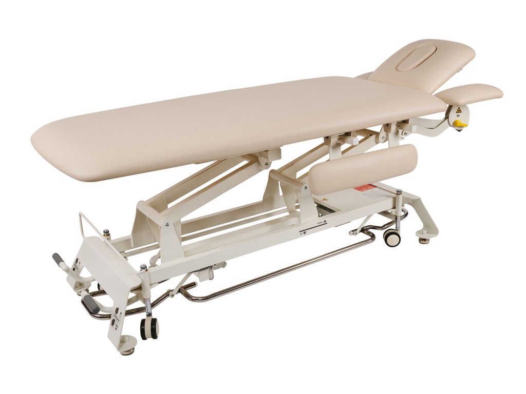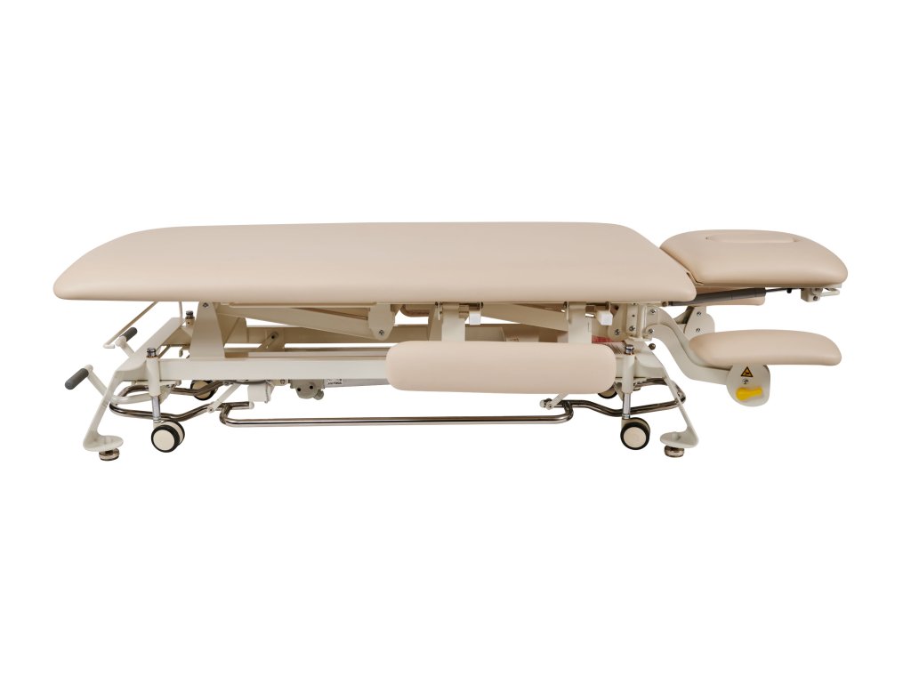 Elektricky nastavitelné lehátko s příjemně silným polstrováním. V ceně kolečka – centrální zdvih.