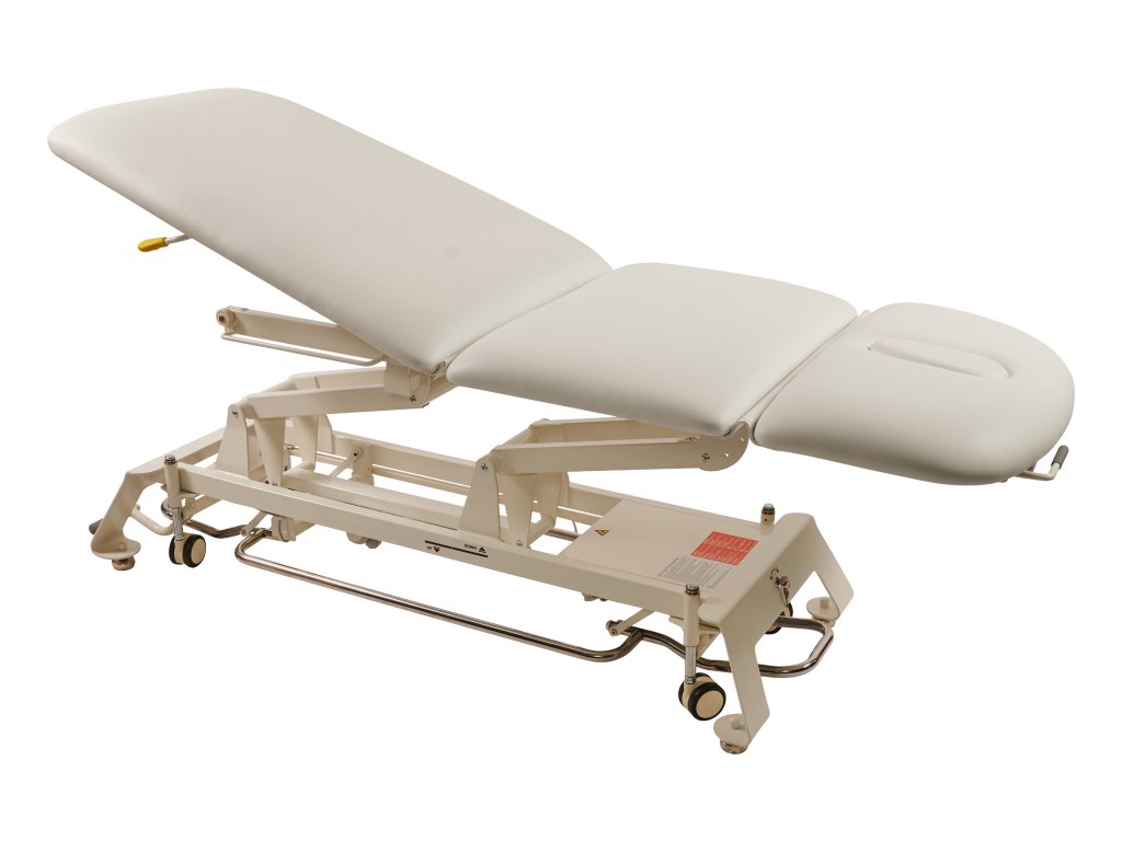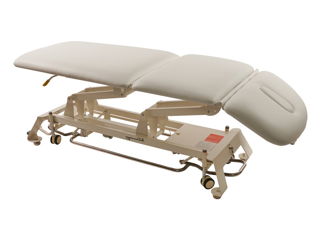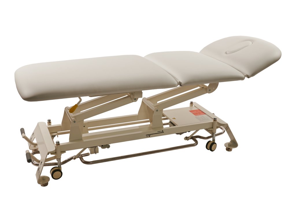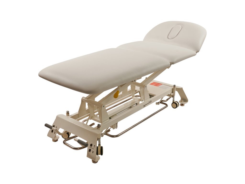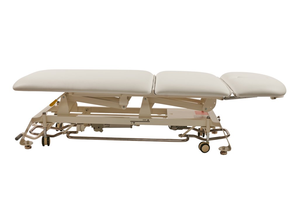 Elektricky nastavitelné lehátko s příjemně silným polstrováním. V ceně kolečka – centrální zdvih.