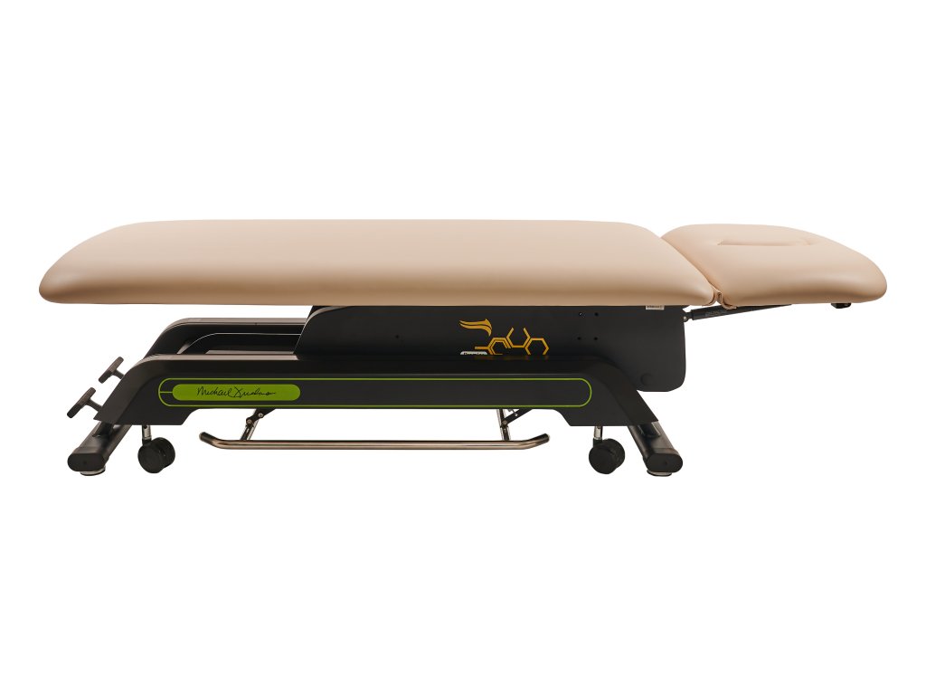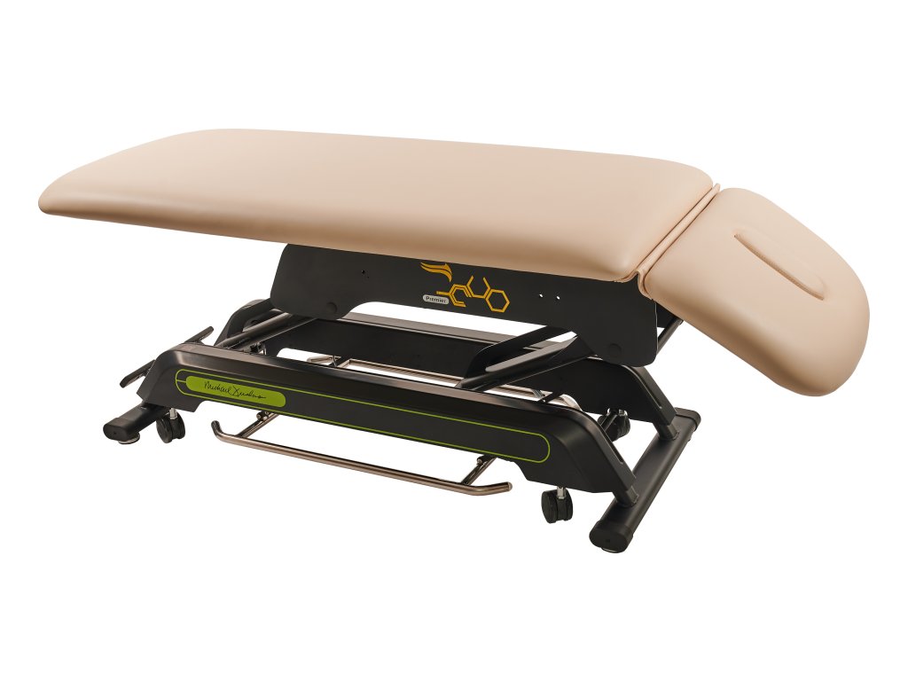 Elektricky nastavitelné lehátko s příjemně silným polstrováním. V ceně kolečka – centrální zdvih.