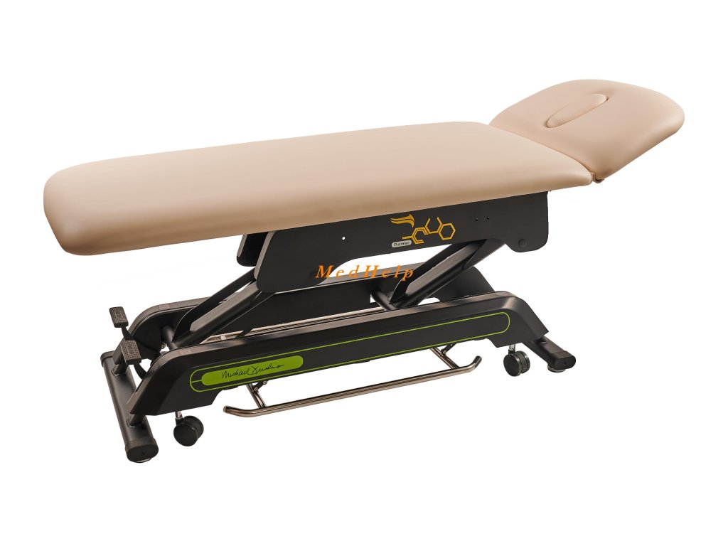 Výška lehátka je stavitelná elektromotorem pomocí rámového ovladače. Rámový ovladač je umístěn těsně nad zemí podél obvodu celého lehátka. Velkou výhodou je možnost nastavení výšky lehátka pomocí špičky nohy na jakékoliv straně lehátka.