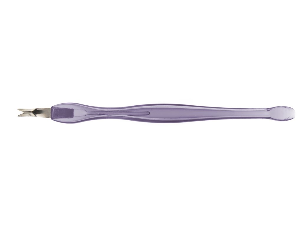Plastový seřezávač s kovovým koncem slouží k odstranění kůžičky na nehtu.