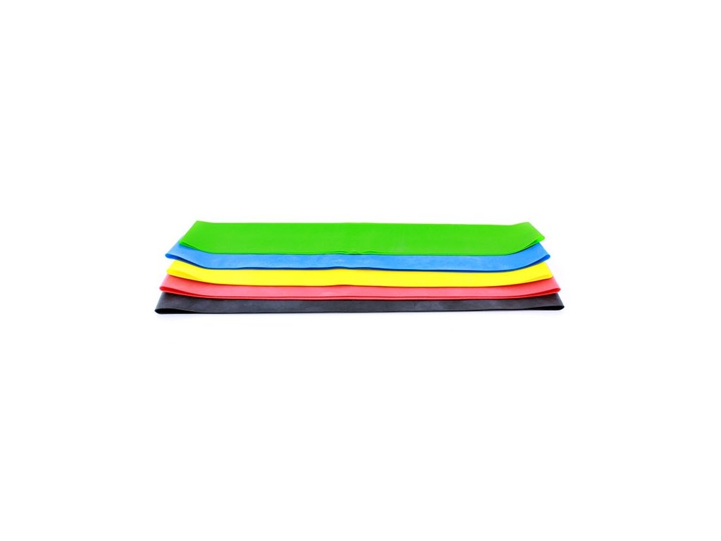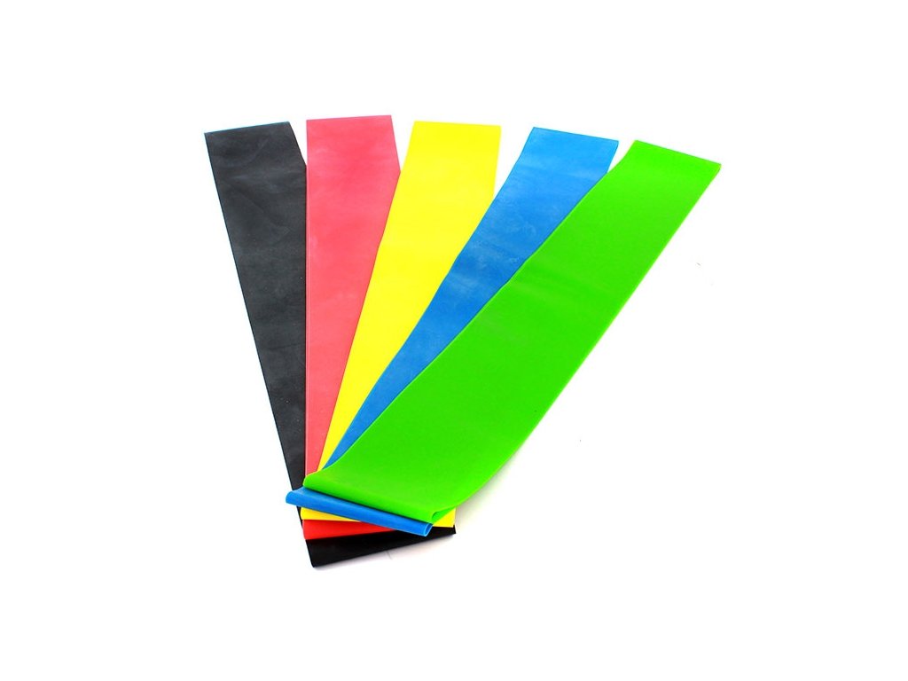 Sada pěti pružných a odolných gum pro cvičení. Nezbytné pro posilovací cvičení v rehabilitaci a fyzioterapii a pro protažení svalů.