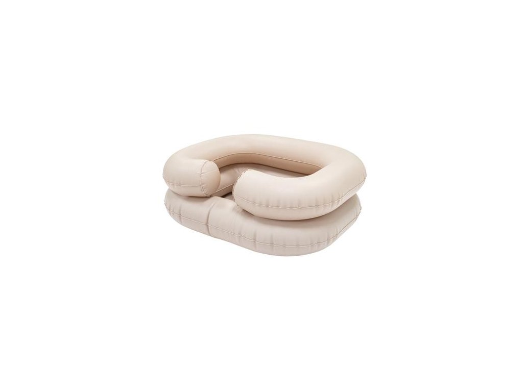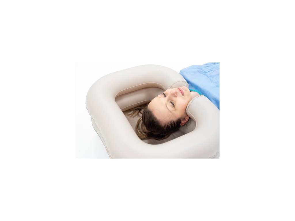 Gumové nafukovací umyvadlo pro mytí vlasů je určeno pro osoby se zdravotním postižením, nemocné, seniory a trvale ležící osoby nebo pro osoby se zdravotním postižením, pro které není tradiční sprchování nebo koupání kvůli jejich zdravotnímu stavu možné. Je vynikajícím pomocníkem pro pečovatele, kteří chtějí zajistit řádnou hygienu pro trvale ležící osoby. Umožňuje vám umýt si hlavu a vlasy přímo v posteli. Díky sestavě se sprchovou hlavicí (se stop ventilem), vodním vakem a odtokovou hadici je péče o nemocného mnohem jednodušší. Speciální výřez usnadňuje podporu hlavy nemocné osoby a zabraňuje stříkání vody na polštář, ložní prádlo nebo postel.