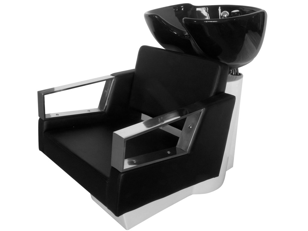 Elegantní kadeřnický mycí box s bílým podstavcem.
