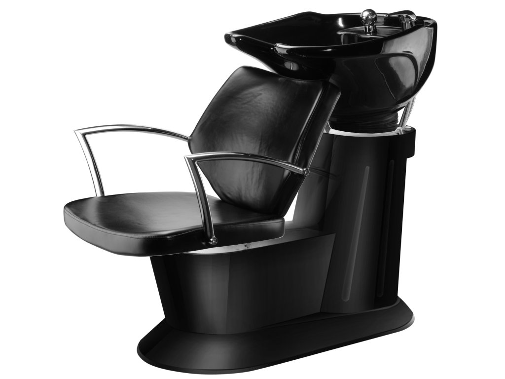Ekonomický kadeřnický mycí box s bílým podstavcem.