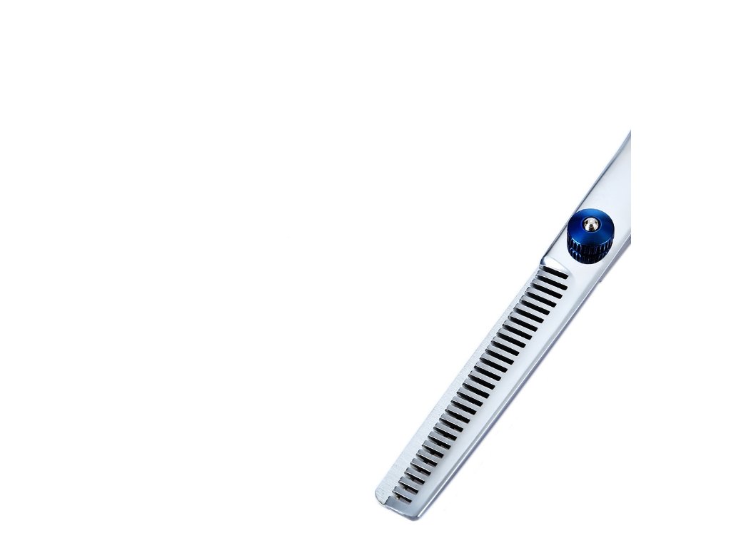 Kvalitní kadeřnické efilační nůžky. Pro praváky. S opěrou na malíček.