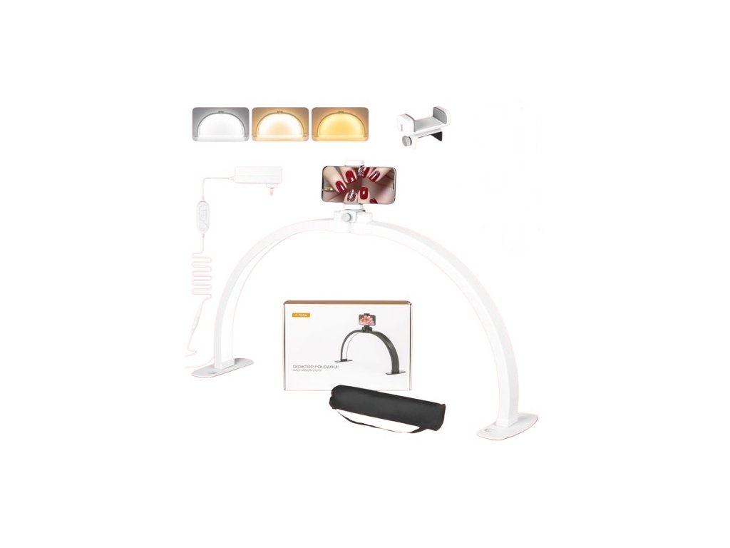 Lampa je také dodávána s držákem mobilního telefonu, který lze umístit svisle nebo vodorovně pro natáčení, živé vysílání nebo online výuka a sledování videí pro klienty.