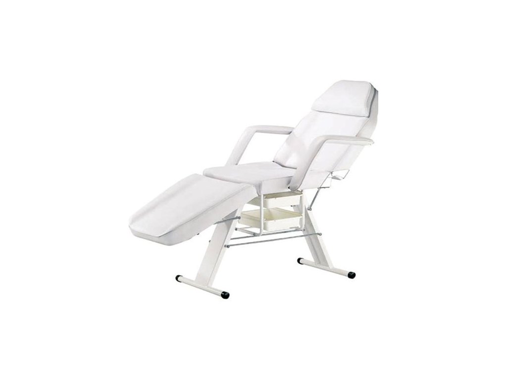 Kosmetické křeslo se stabilní konstrukcí a silným příjemným polstrováním. Nastavitelný zádový dílec až do vodorovné pozice. Nožní dílec nastavitelný až do vodorovné pozice. Odnímatelná pokrývka v zádovém dílci (po vyjmutí otvor na obličej). Jednoduše odnímatelné opěrky na ruce.