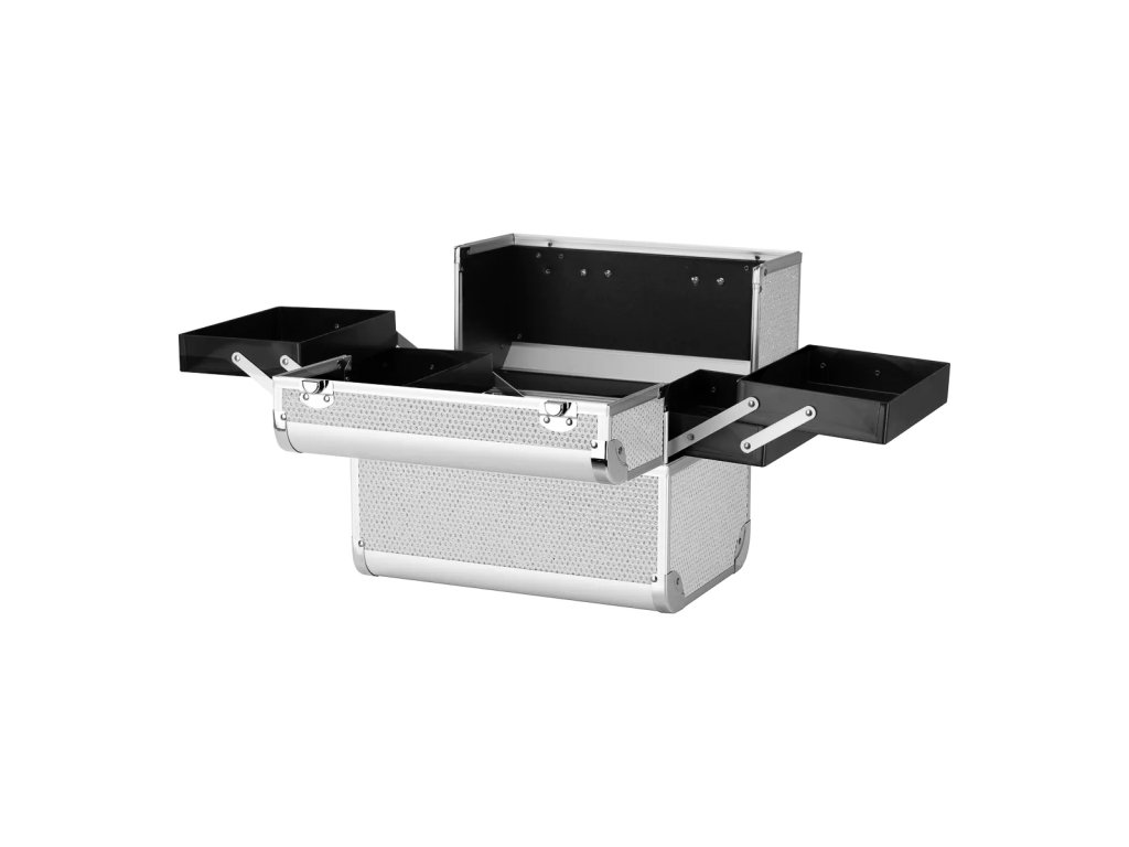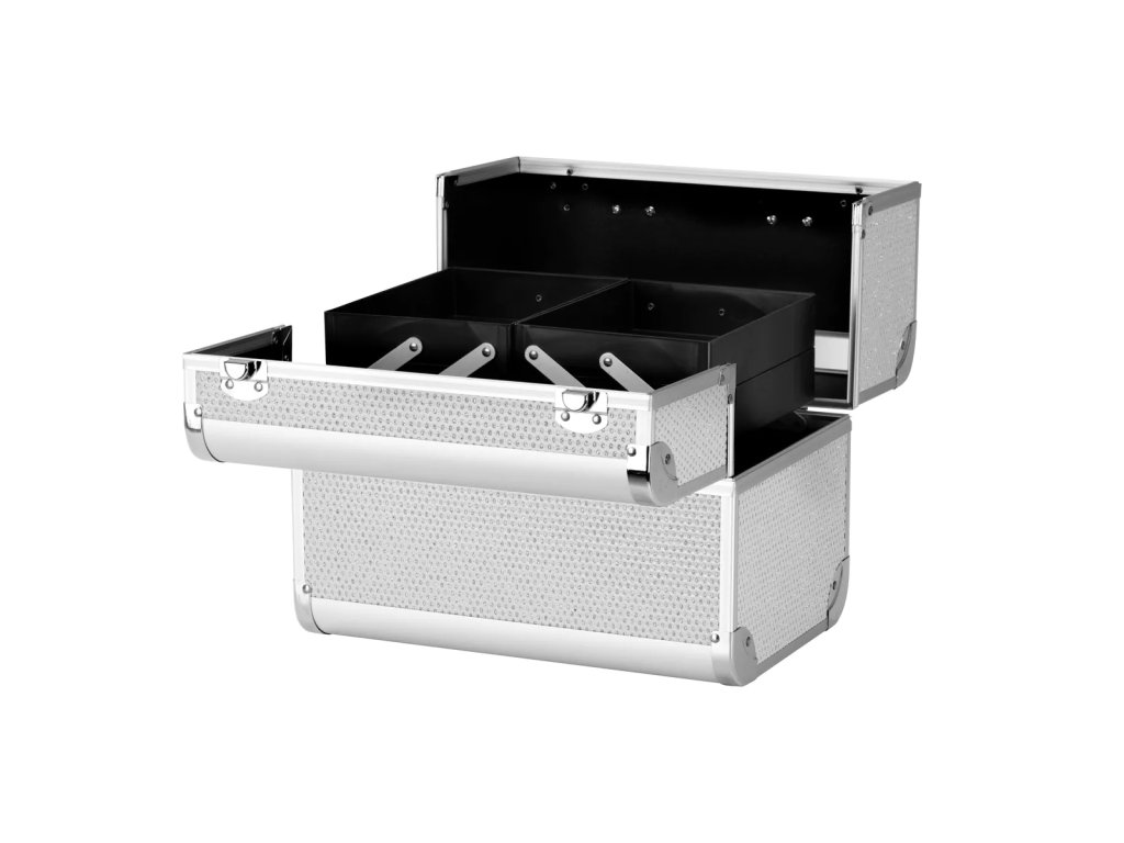 Skvělý stylový kufřík s třpytivým povrchem – ideální pro bezpečné přenášení i skladování kosmetiky a drobných předmětů.