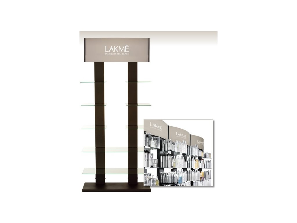 Stojan LAKMÉ. Kovová konstrukce, police z tvrzeného skla. Díky své velikosti, může být umístěn kdekoliv v místě prodeje. Jeho elegantní, jednoduchá konstrukce je dekorativním prvkem v jakémkoli prostředí.