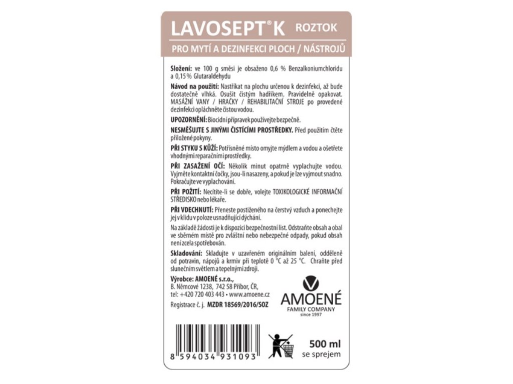 Přípravky značky Lavosept® vyrábí česká firma Amoene, která je zaměřena na výrobu vlastní certifikované české dezinfekce na kůži rukou, nohou, na nástroje a podlahy.