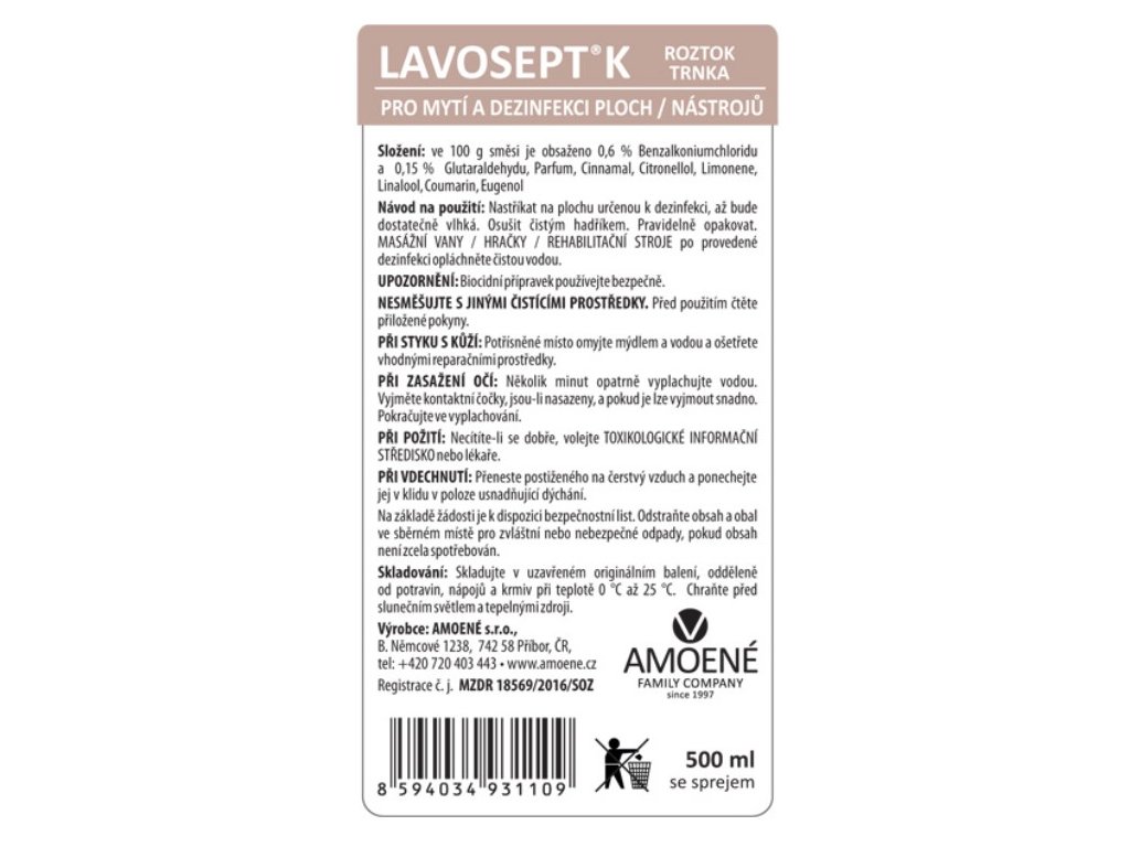 Lavosept K roztok pro mytí a dezinfekci ploch a nástrojů - s vůní trnky, 500 ml