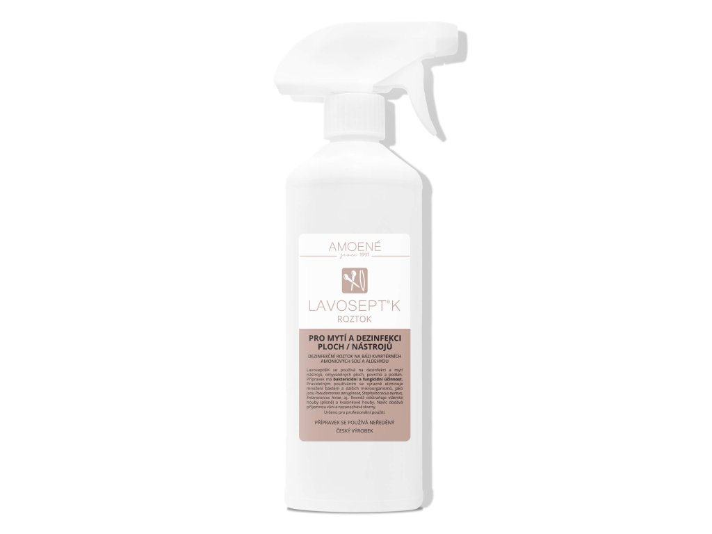 LAVOSEPT K je dezinfekční přípravek na bázi kvartérních amoniových solí a aldehydů ve formě rozředěného koncentrátu určené k okamžité aplikaci pro dezinfekci ploch a nástrojů. Lavosept K se používá na dezinfekci a mytí všech omyvatelných ploch a povrchů a dále k dezinfekci nástrojů ponorem, zejména v sociální a zdravotnické sféře, službách, pedikérských a manikérských salonech, kadeřnictví, kosmetikách, welness a fitness centrech, kde výrazně snižuje počet bakterií. Odstraňuje kromě jiného mikroskopické vláknité houby – plísně, mikroskopické kvasinkové houby – kvasinky a dále mikroorganizmy Pseudomonas aeruginosa, Staphyloccocus aureus, Enterococcus hirae, aj. Mimo to nezanechává skvrny.
