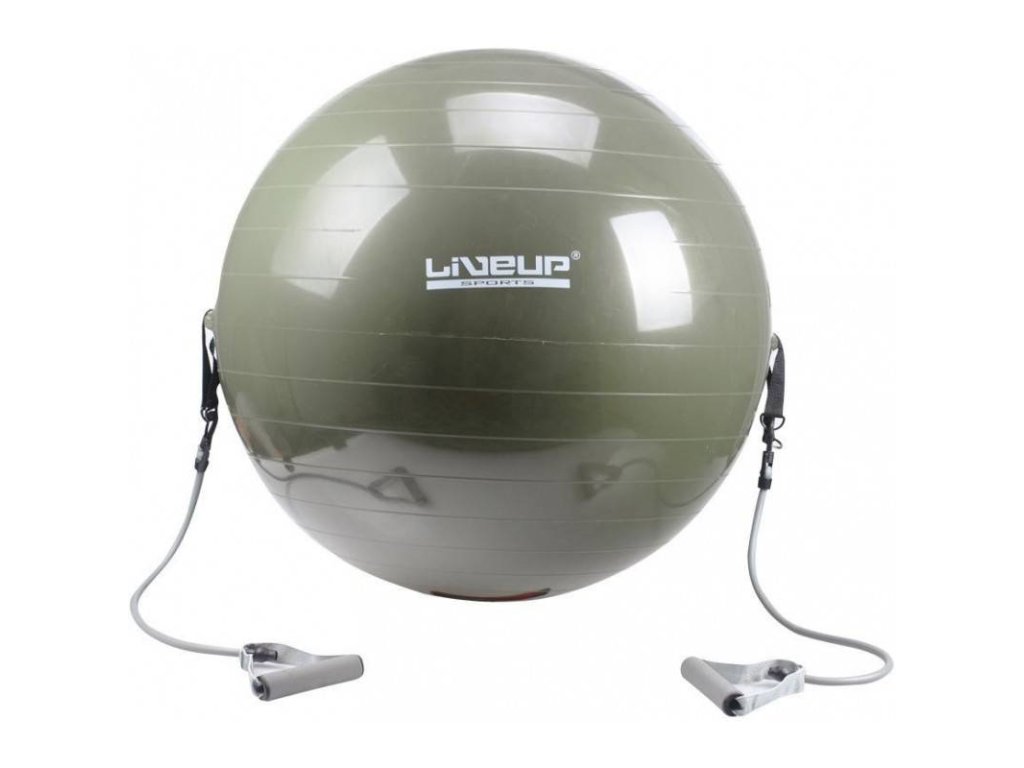 LIVEUP Gymnastický míč posilovací s expandery 65cm - šedozelený