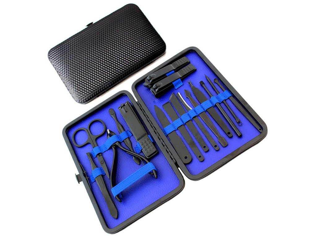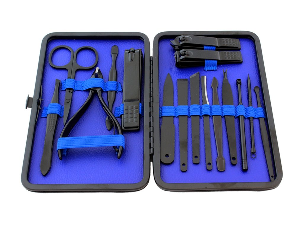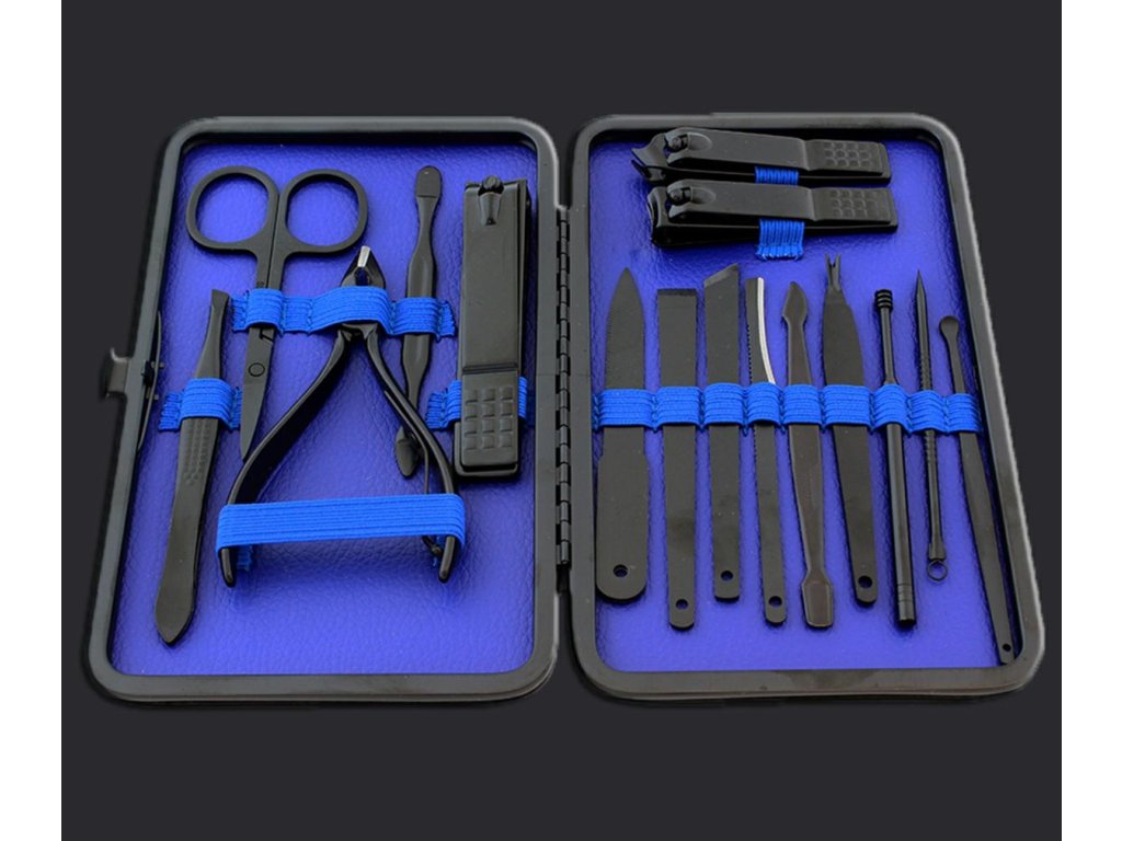 Mimořádně praktická sada nástrojů pro pedikúru, manikúru a další ošetření nehtů. Vybaveno 16prvky, jako jsou nůžky, kleště a další viz obrázek. Všechny nástroje jsou vyrobeny z vysoce kvalitní nerezové oceli, bezpečné při kontaktu s pokožkou. Vše je zabaleno v estetickém uzavíratelném pouzdře, které usnadňuje přenášení a skladování sady. Díky ergonomickému tvaru a dobrému profilování nástroje perfektně padnou do ruky a zajišťují pohodlnou práci. Nezapomeňte po každém použití nástroje sterilizovat!