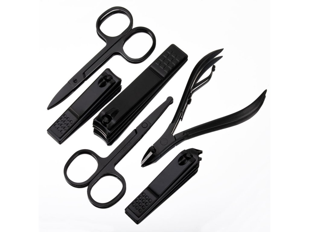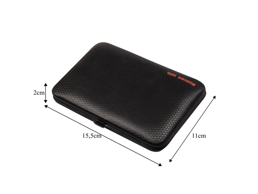 18 dílná manikúra z nerezové oceli v luxusním černém provedení.