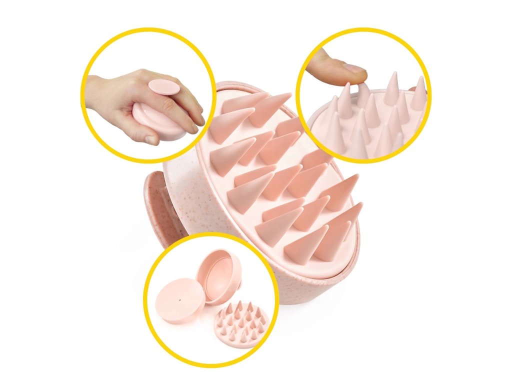Kartáček na masáž hlavy se silikonovými hroty je inspirován akupresurními podložkami – hroty, které působí na pokožku, stimulují mikrocirkulaci a poskytují pocit uvolnění a relaxace. Zaoblené konce zabraňují podráždění.
