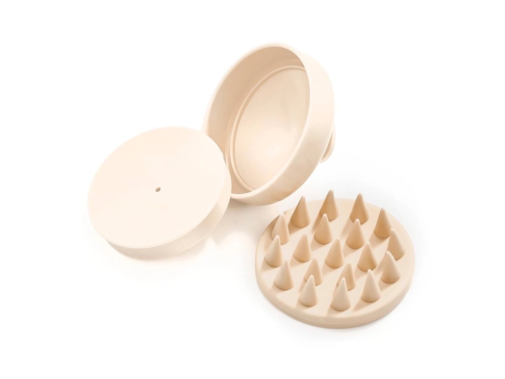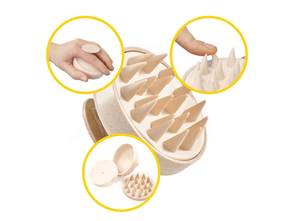 Kartáček na masáž hlavy se silikonovými hroty je inspirován akupresurními podložkami – hroty, které působí na pokožku, stimulují mikrocirkulaci a poskytují pocit uvolnění a relaxace. Zaoblené konce zabraňují podráždění.