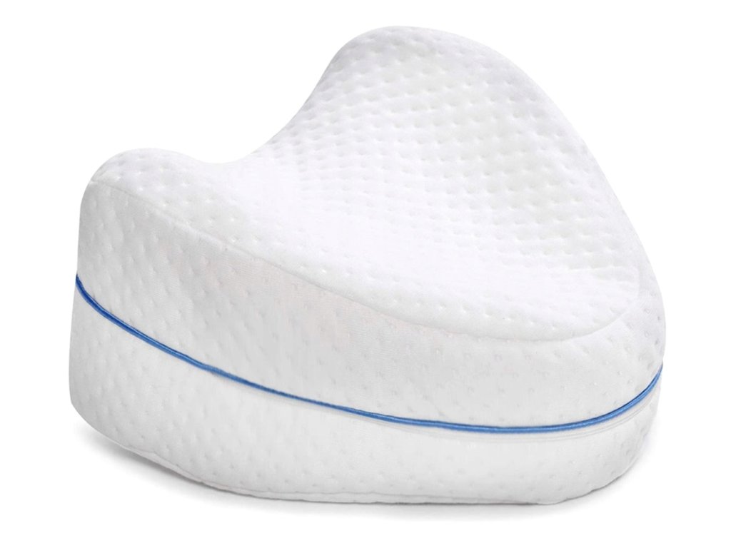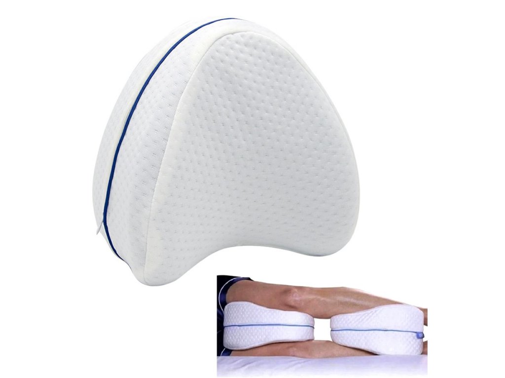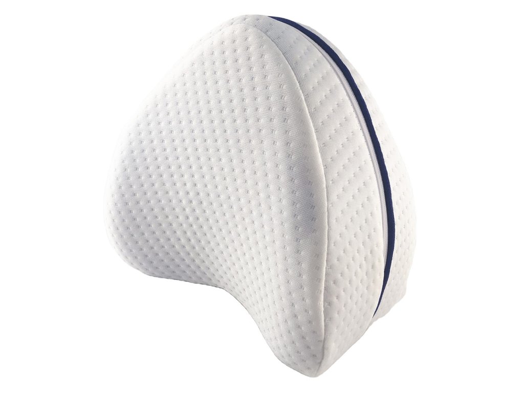 Polštář má charakteristický tvar, který umožňuje pohodlné polohování nohou během spánku.