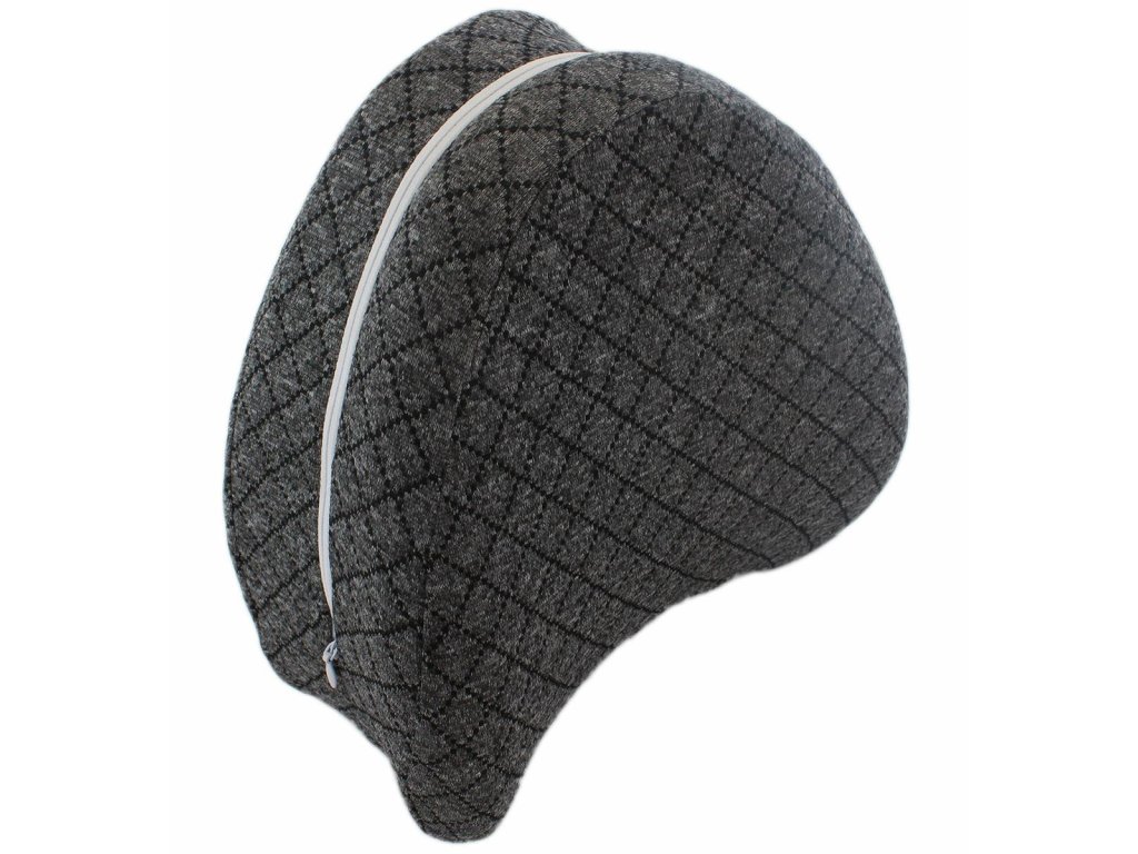 Polštář má charakteristický tvar, který umožňuje pohodlné položení nohou při spánku.