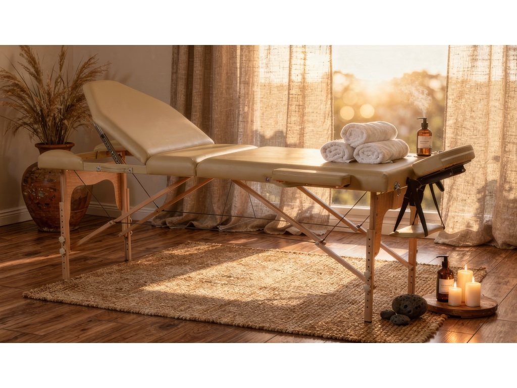 MH Star skládací dřevěné lehátko ETL75 - 71cm - béžové