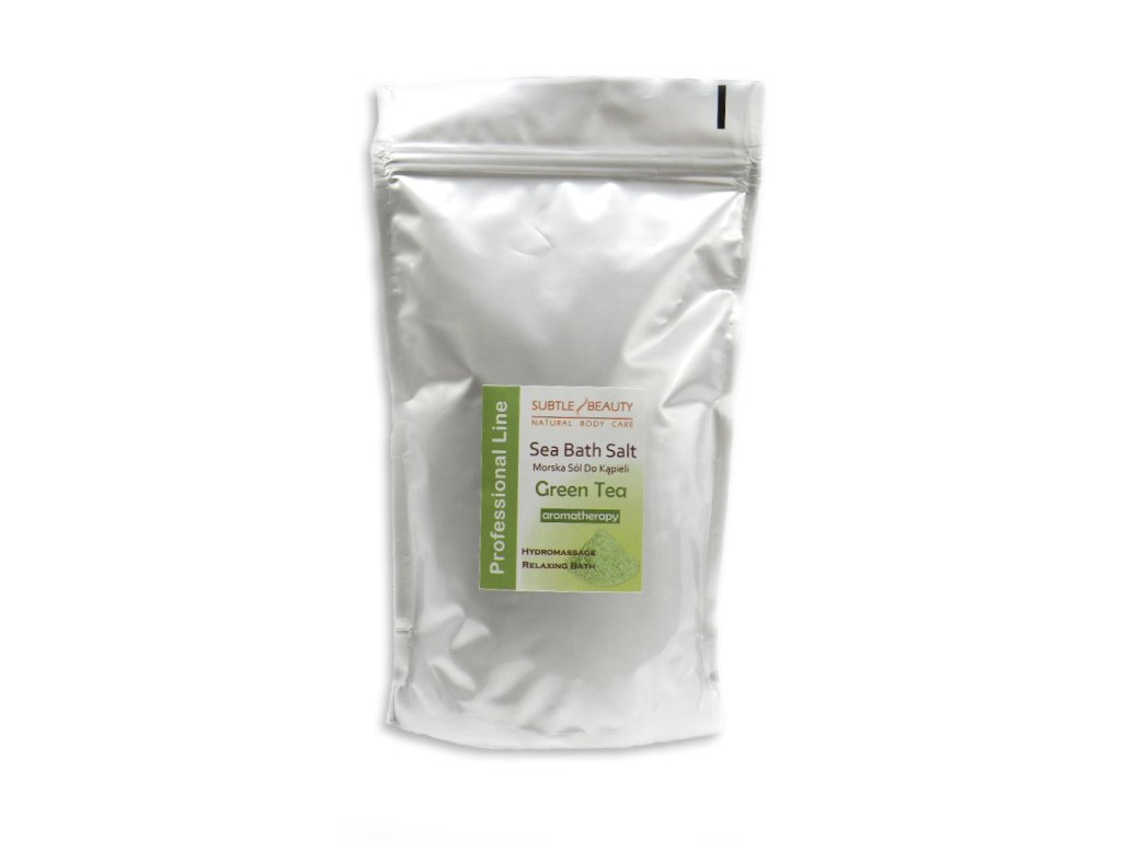 Mořská sůl obsahuje neobvykle vysoké množství stopových prvků a skvěle čistí tělo, zlepšuje krevní oběh a zjemňuje a vyhlazuje pokožku. Naše sůl s přídavkem přírodních éterických olejů, se nejen stará o vaše tělo, ale i vaši mysl. Sůl obsažená v aromatickém oleji zeleného čaje zlepšuje náladu, osvěžuje a povzbuzuje. Uvolňuje a uklidňuje.