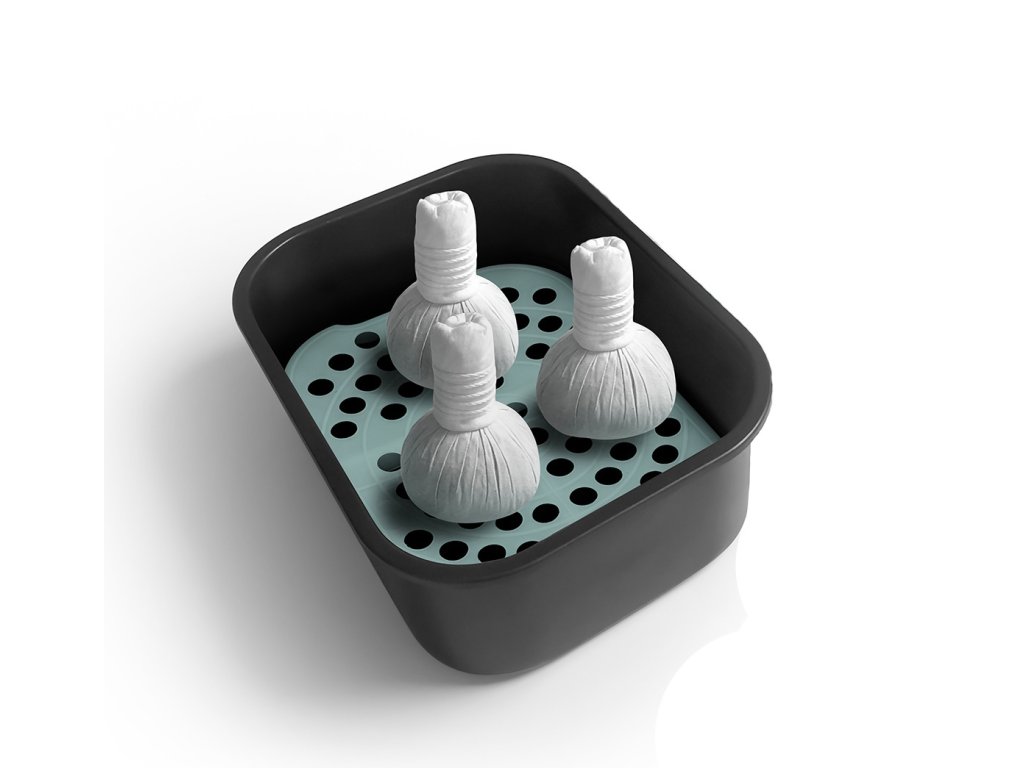 K tomuto produktu od nás obdržíte silikonovou vložku (k ohřevu bylinných pečetí, ručníků, apod.), plastovou lžíci na kameny a tři plastové lahvičky na olej.