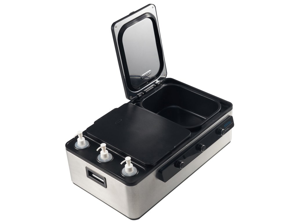 Vnitřní rozměry nádob na vodu 27,5×20,5×8,5cm. Max objem nádob cca 4,8l.