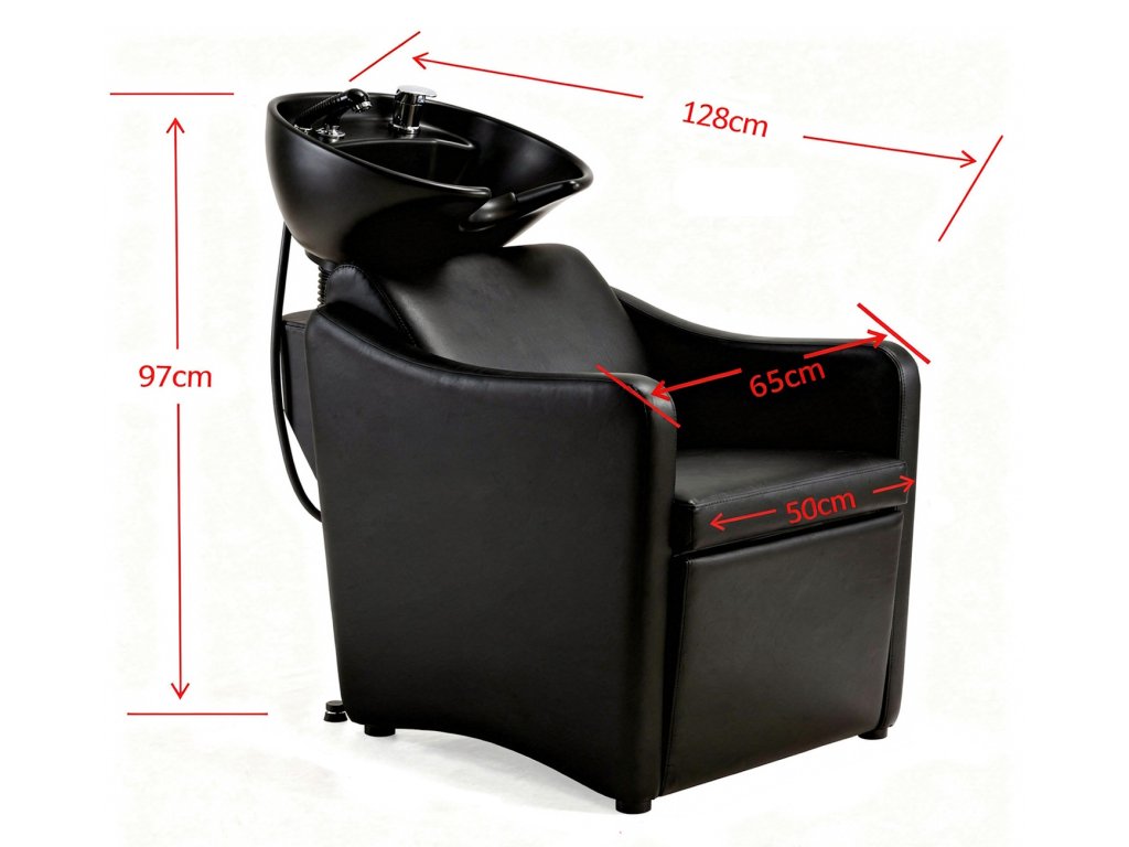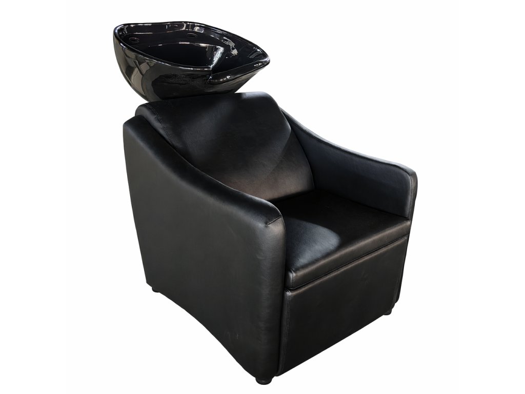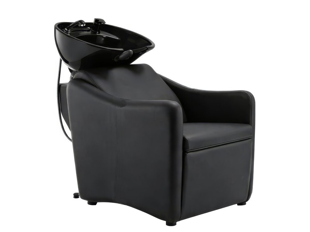 Elegantní kadeřnický mycí box v černé barvě.