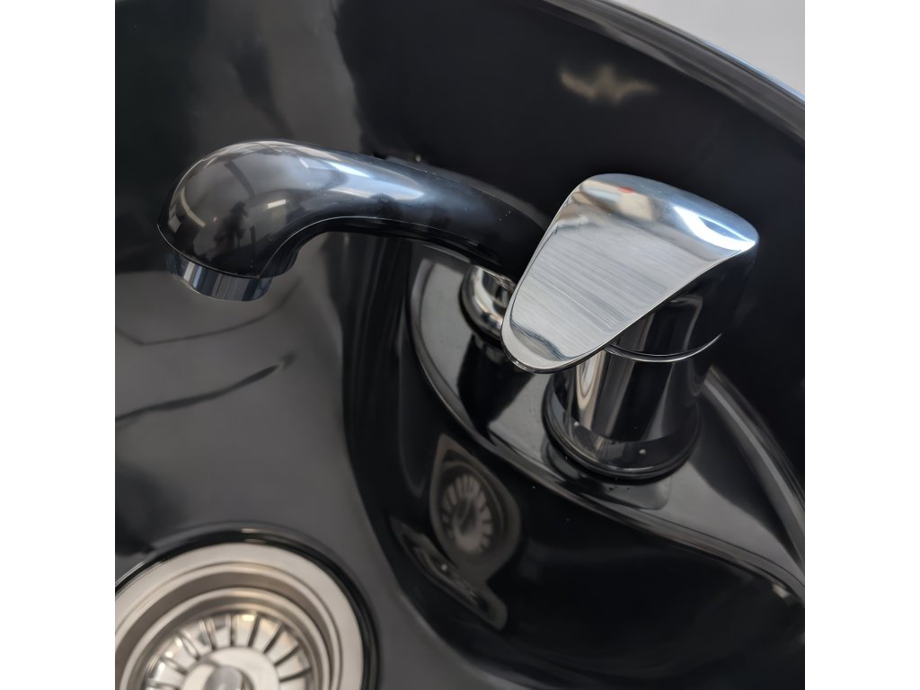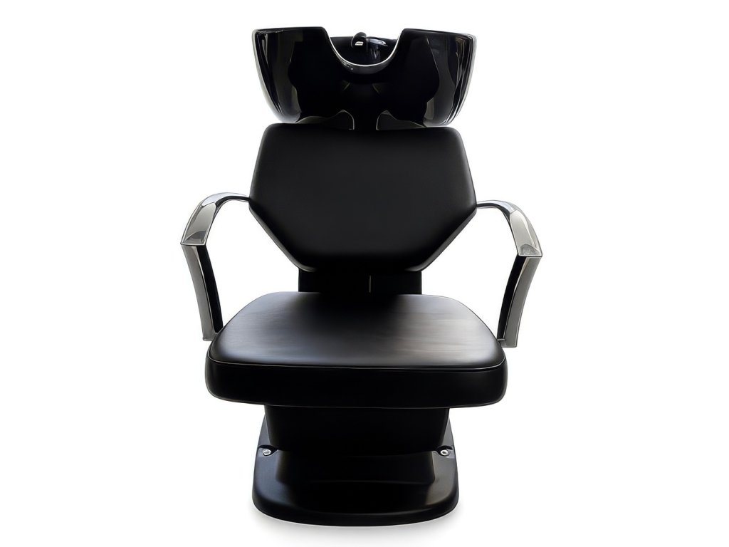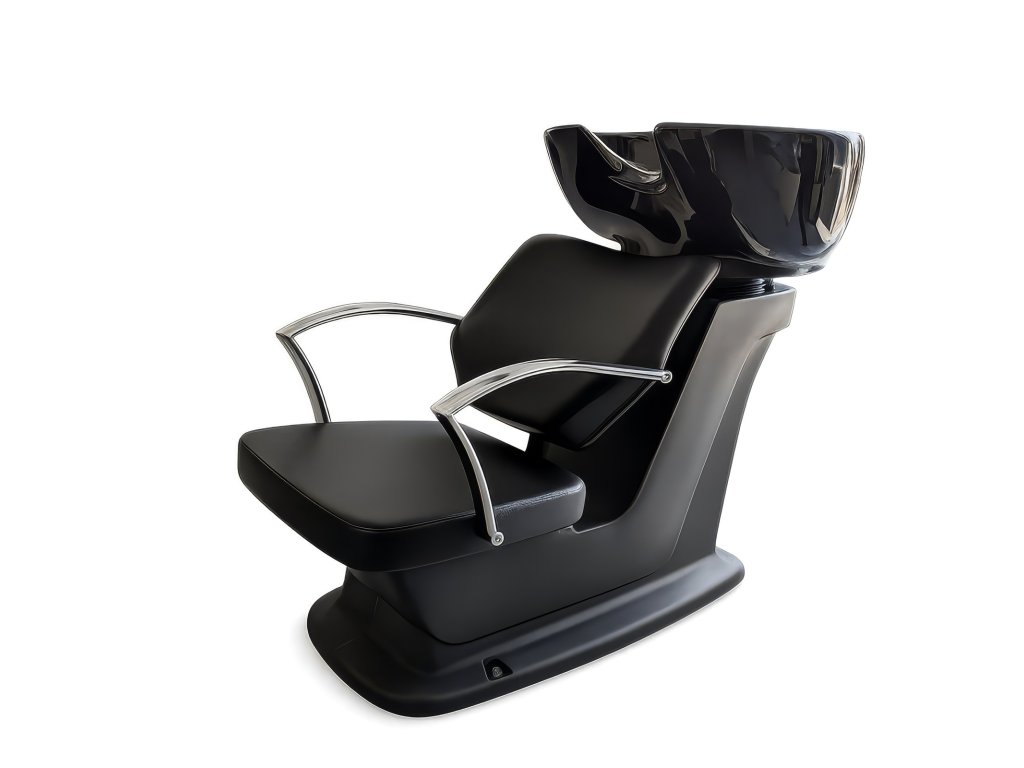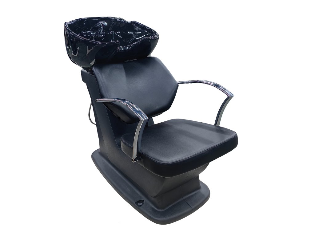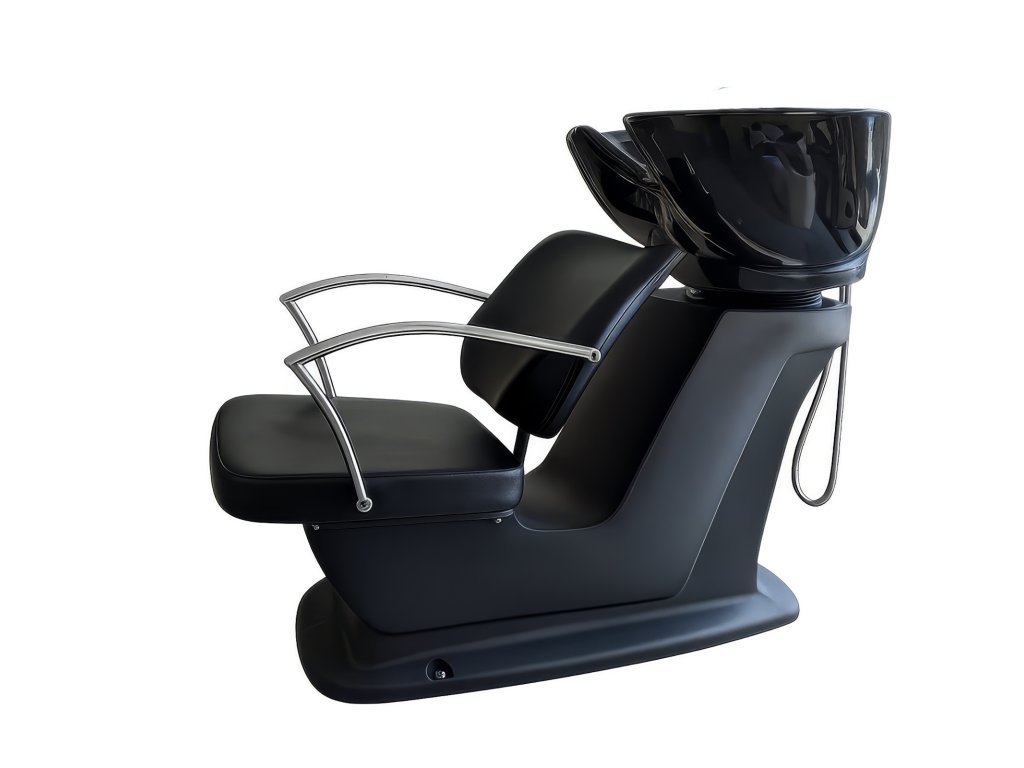 Jednoduchý kadeřnický mycí box v černé barvě.
