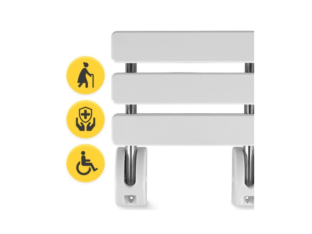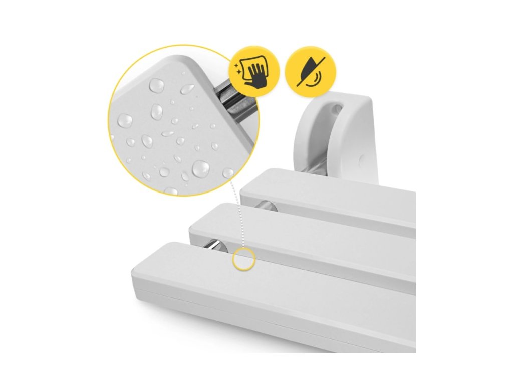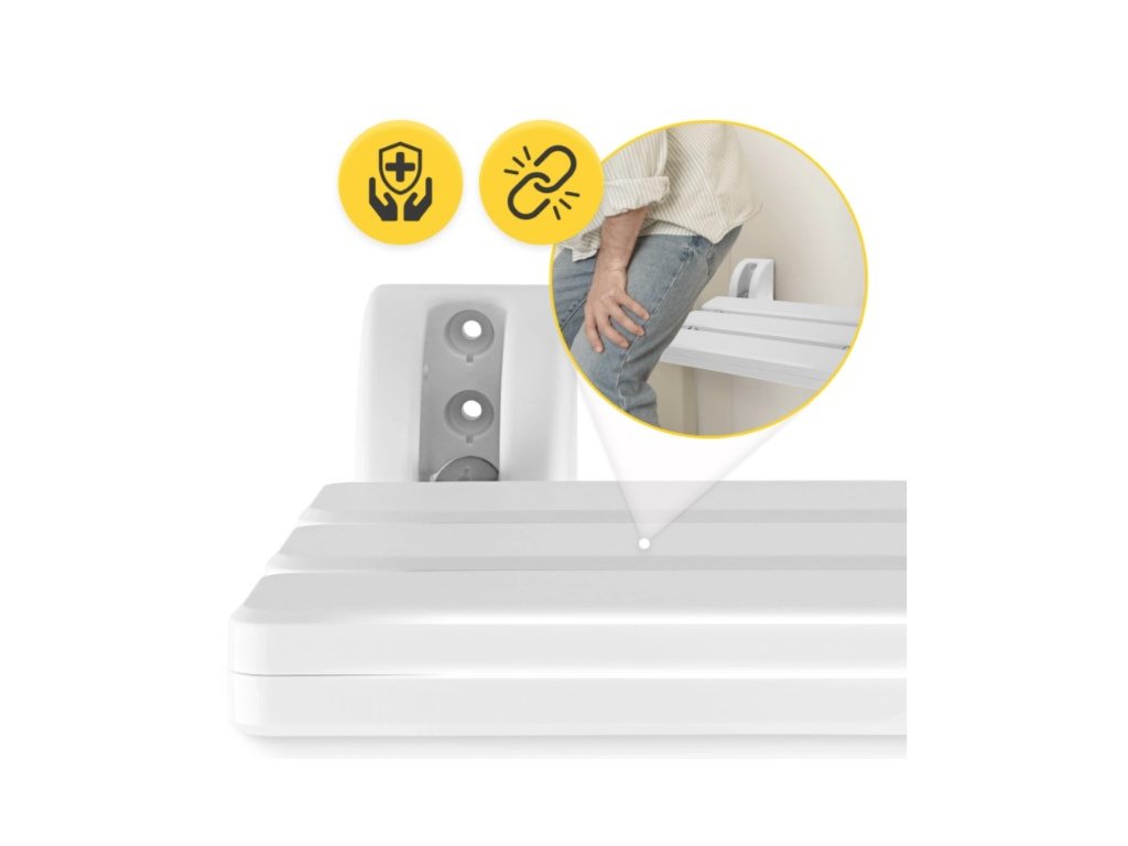 Praktické skládací sedátko, které zajistí bezpečné a pohodlné sprchování i v malých koupelnách.